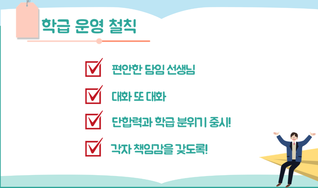 학부모님께 담임교사로서 우리반 아이들을 1년 동안 어떻게 교육할 것인지에 대한 학급운영 원칙을 잘 설명해 주시고, 아이들을 내 자녀와 조카라는 생각으로 잘 살피고 교육하겠다고도 전해주시면 좋을 것 같습니다. 또한 자녀와 관련된 궁금한 사항이 있으면 언제든지 주저 마시고 연락(가급적 퇴근 전) 주시라고도 안내해 주시길 부탁드립니다."