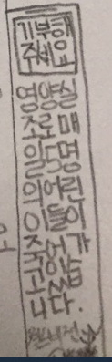 '기부해주세요. 영양실조로 매일 5명의 어린이들이 죽어가고 있습니다. 월드비전'