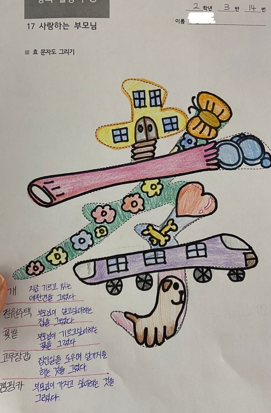 사랑하는 부모님께 효도하고 싶은 것을 그리는 활동인 것 같습니다.