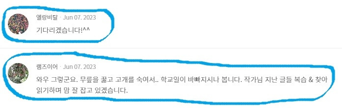 특별히 @엘랑비탈 님과 @램즈이어 님 두 뿐께서는 아래와 같은 글을 남겨주셨습니다.