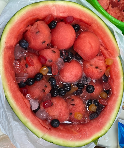 어떤 반은 공포 영화를 보고, 어떤 반은 장기자랑을 하고, 어떤 반은 우의를 입고 물총 놀이를 하는 등 다양한 활동을 했습니다. 그런데 3학년 담임선생님 한 분이 수박 화채 만들기 대회를 열었다고, 교감인 저에게 심사위원을 해달라고 요청을 했습니다. 저는 심사위원 자격으로 교실에 들어가 모둠별로 아이들이 정성껏 만든 화채를 심사하였습니다.