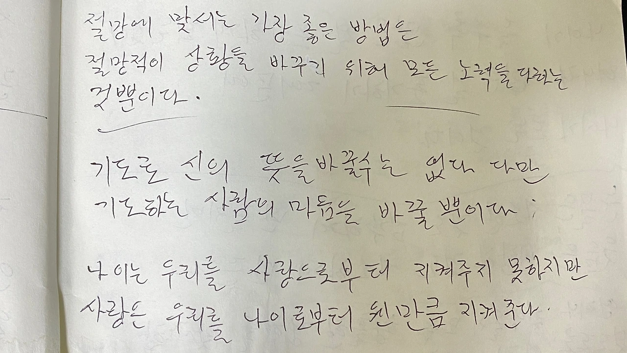 “어? 어머니가 한글을 쓸 줄 아시네. 몇 년 전까지만 해도 못 썼는데”라고 생각했다.