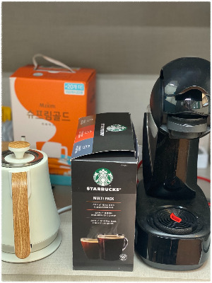 세면대에서 손을 닦는 순간 두 번째 유혹의 손길이 내게 다가온다. 네스카페 커피머신의 전원을 켜고 정수기에서 물을 받아 채운다. 스타벅스 콜롬비아 캡슐을 머신 주둥이 넣고 빨간색 버튼이 깜빡거림을 멈출 때 머리 위의 레버를 오른쪽으로 당긴다. '뽁' 소리와 함께 뚫린 캡슐 안으로 뜨거운 물이 들어간다. 그럼 머신 위에 있는 머그컵 안으로 초콜릿보다 진한 커피 향이 쏟아진다. 내 코를 자극하며 행복의 도파민이 발생한다.