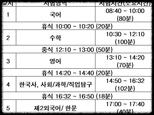 8시 40분 1교시 국어 시험이 시작됩니다.