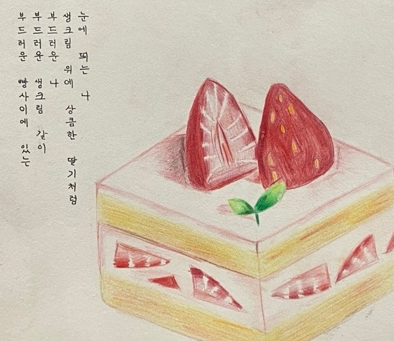 부드러운 빵 사이에 있는 부드러운 생크림 같이 부드러운 나 생크림 위에 상큼한 딸기처럼 눈에 띄는 나