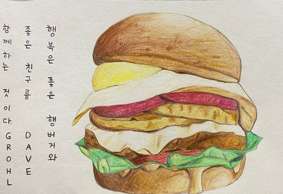 행복은 좋은 햄버거와 좋은 친구를 함께하는 것이다.