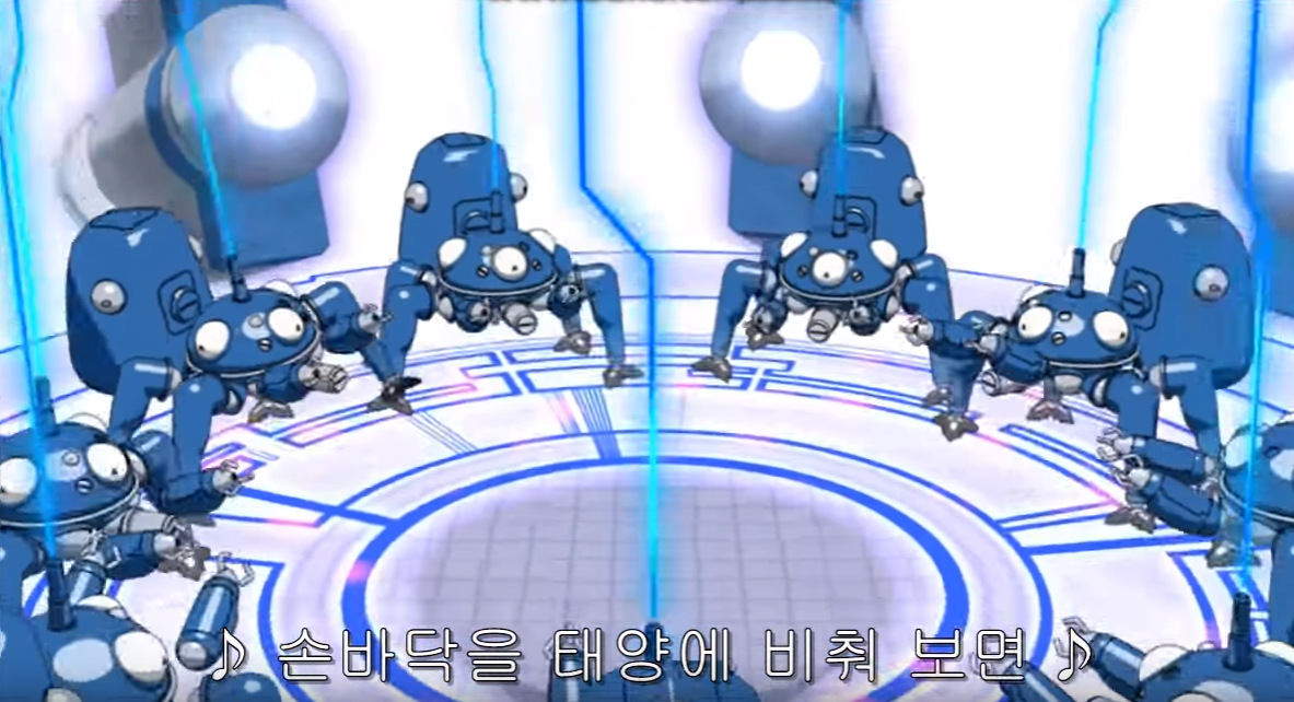 애니 <공각기동대>의 '타치코마' - '손바닥을 태양에'란 노래를 부릅니다.