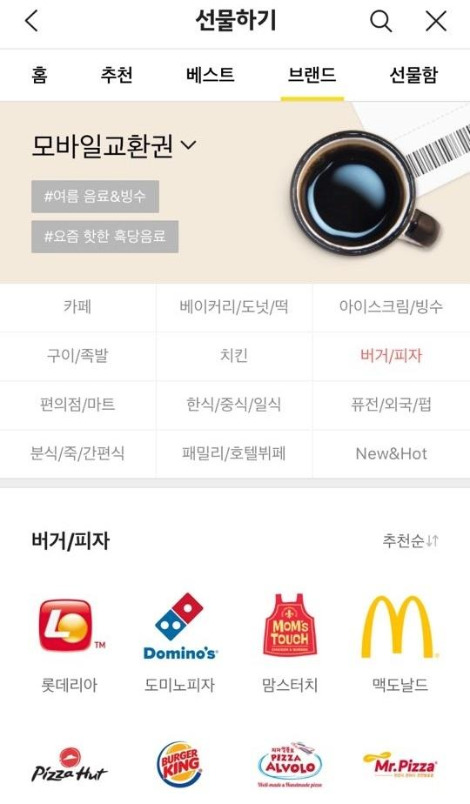 간편하게 기프티콘/상품을 보낼 수 있는 기능인데
