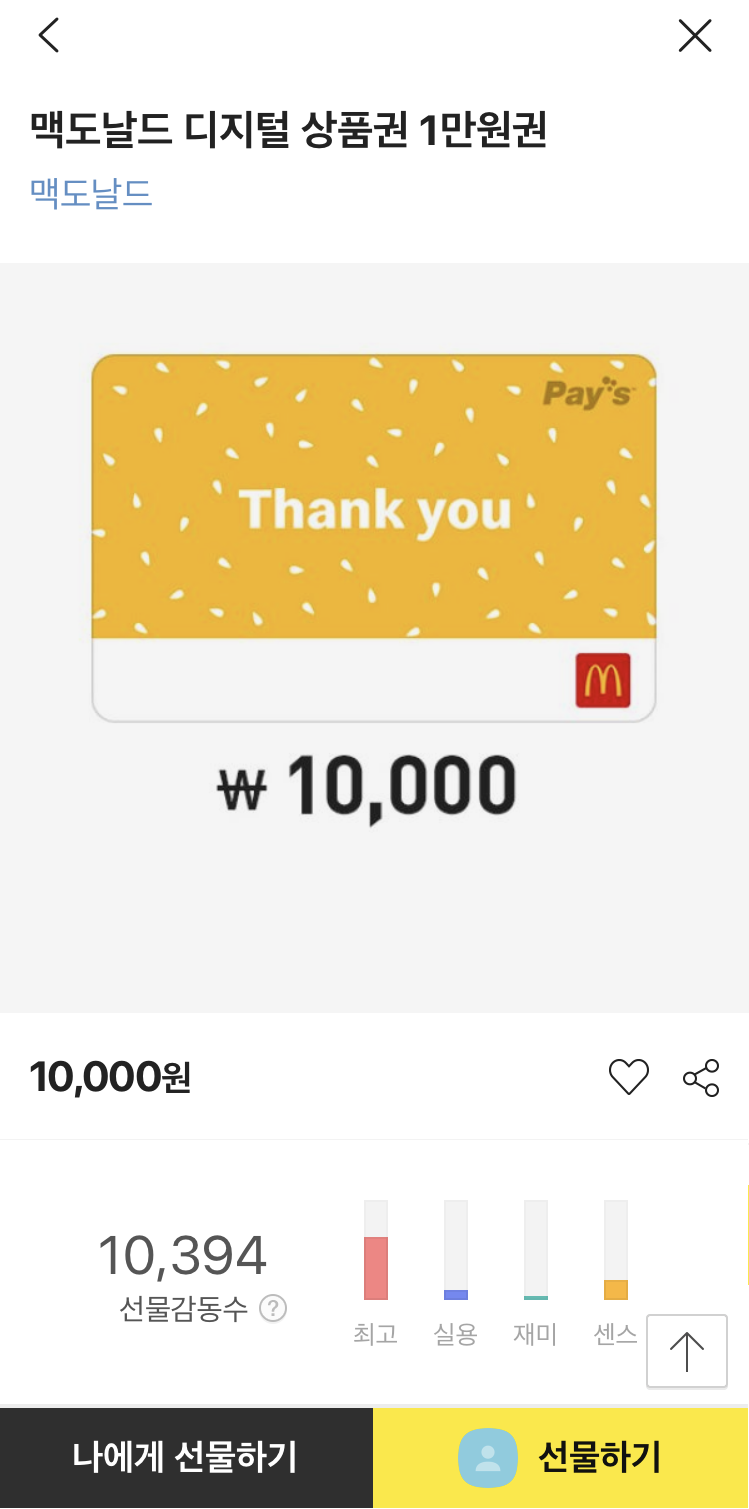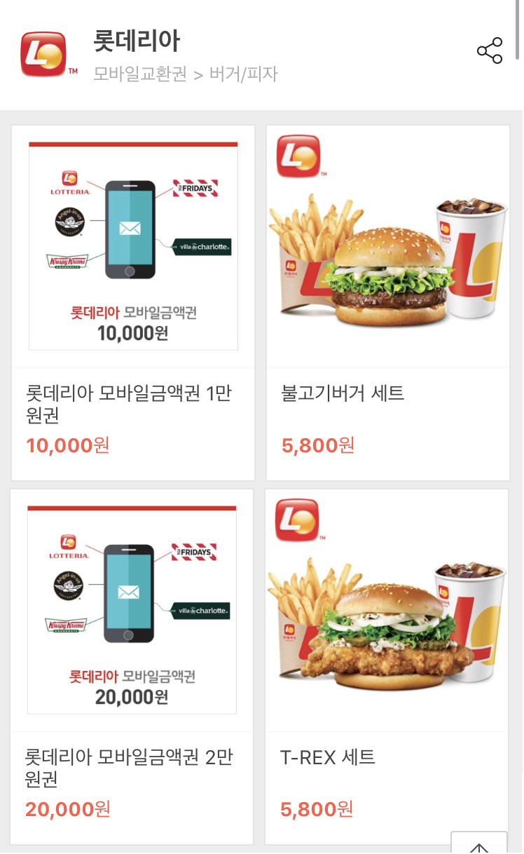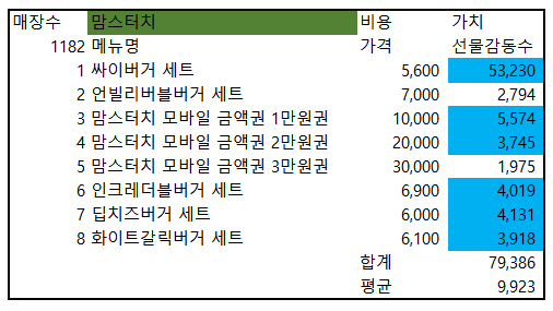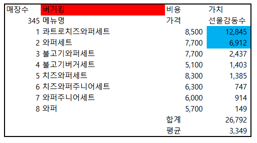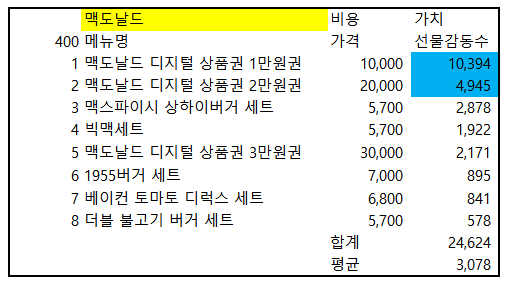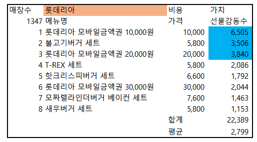 신기하게도 롯데리아, 맥도날드의 1위 매출 상품은 10,000원 상품권이라고 할 수 있습니다.