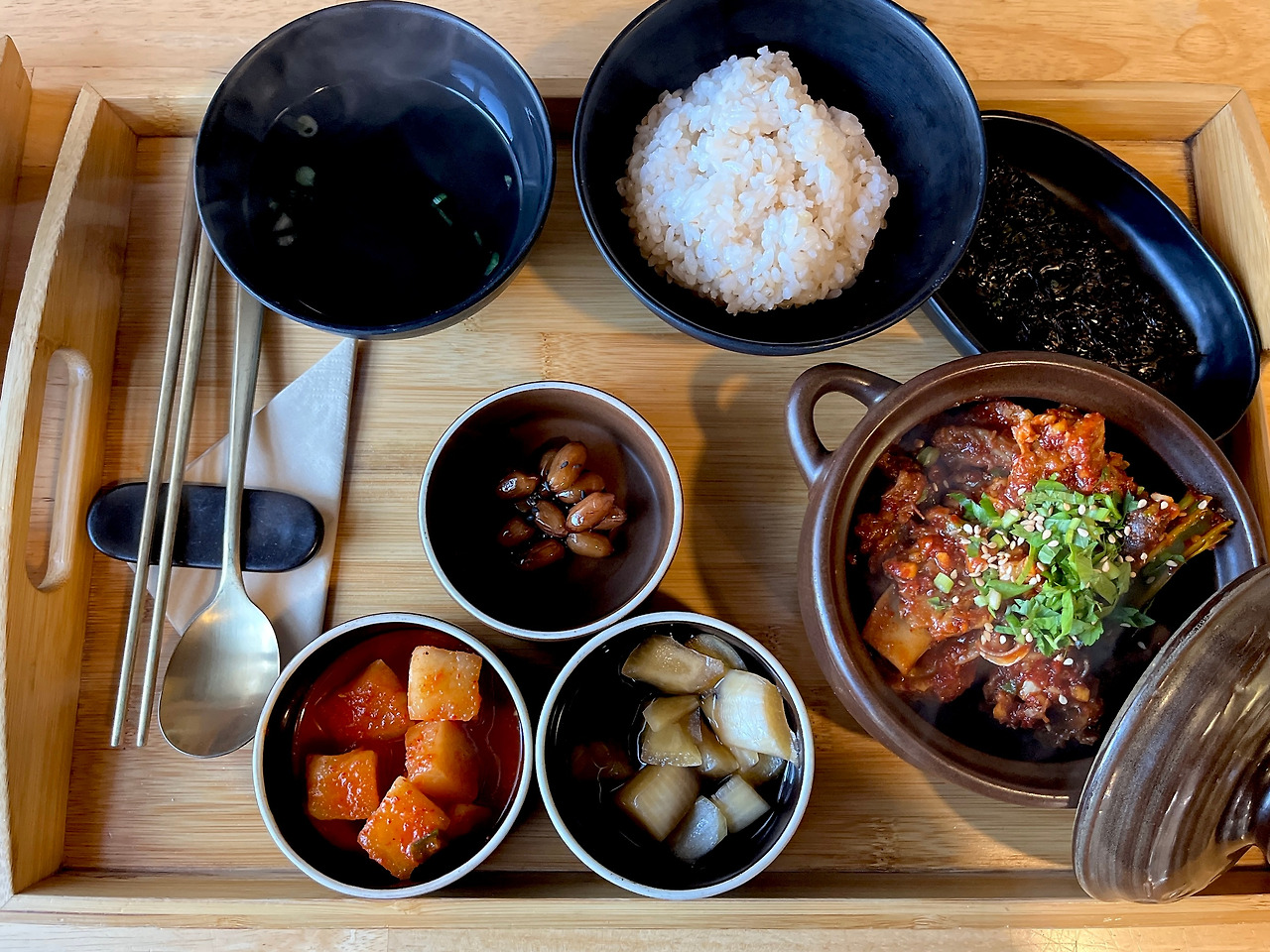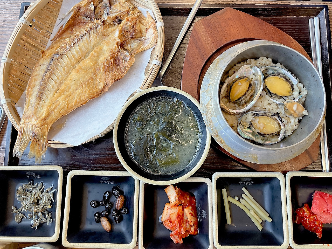 미역국과 옥돔구이를 같이 먹을 수 있는 메뉴를 선택했고 구수하고 진한 미역국에 전복 솥밥과의 조합이 좋았고 옥돔구이는 살도 많고 짭짜름해서 아이들도 잘 먹었습니다.