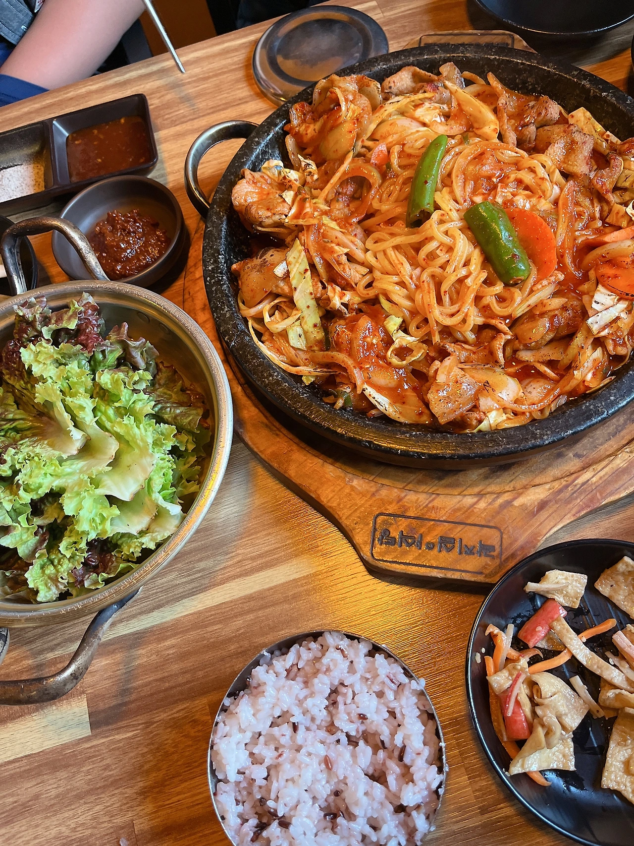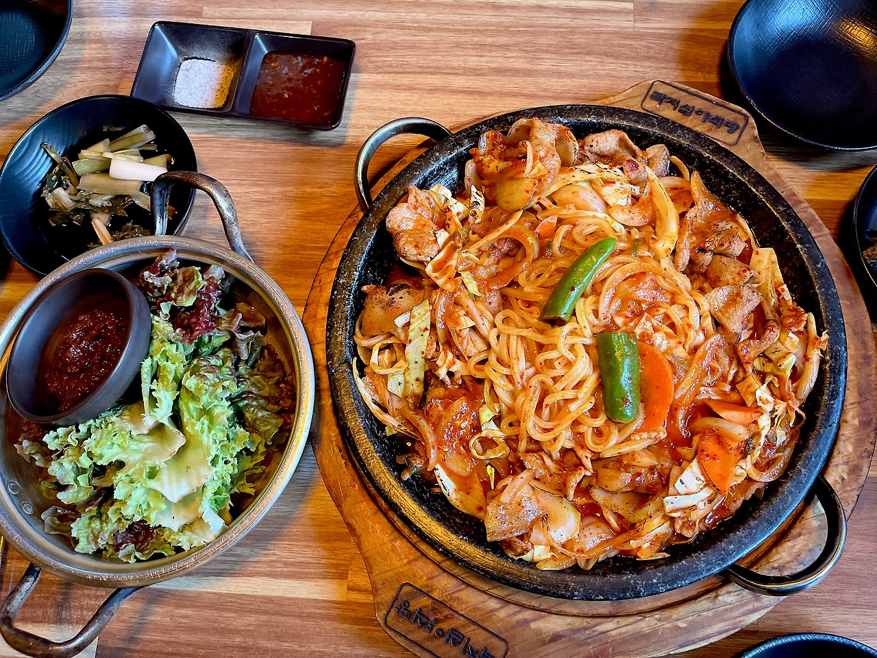 푸짐합니다. 면사리가 양념에 버무려져서 올라가 있고 흑돼지라 그런지 쫄깃하고 맛있습니다. 첫째가 먹자마자 돼지고기 두루치기는 여기가 1등이라고 엄지 척을 해줄 정도입니다.