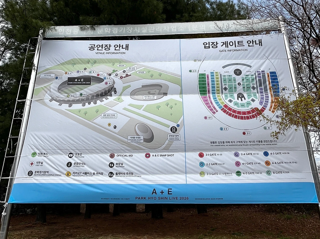 이 중 반쪽만 채운다 해도 24,542석! 축구와 육상경기를 하는 바로 그곳. 그야말로 어마어마 한 규모이다. 이런 군중의 군집을 경험하는 건 2002년 한일 월드컵 이후 거의 처음인 것 같다. 예매창에서 1층에서 4층까지의 좌석표를 보며 그 규모를 예상은 했었지만 어떤 분위기일지는 가늠할 수가 없었다. 그동안 소극장과 장충체육관(총 4,507석), 그리고 올림픽공원 올림픽홀(고정 2,432석/스탠딩 600석)이 내가 경험한 가장 큰 무대였으니 말이다. 변수는 야외공연이라는 점이다. 앞서 두 번의 공연이 전혀 예상치 못한 4월의 추위와 막판 폭우로 인한 고생담이 여기저기 인터넷에 떠돌았다. 그래서 다른 어느 공연보다 후기를 더 꼼꼼히 살펴보았다.