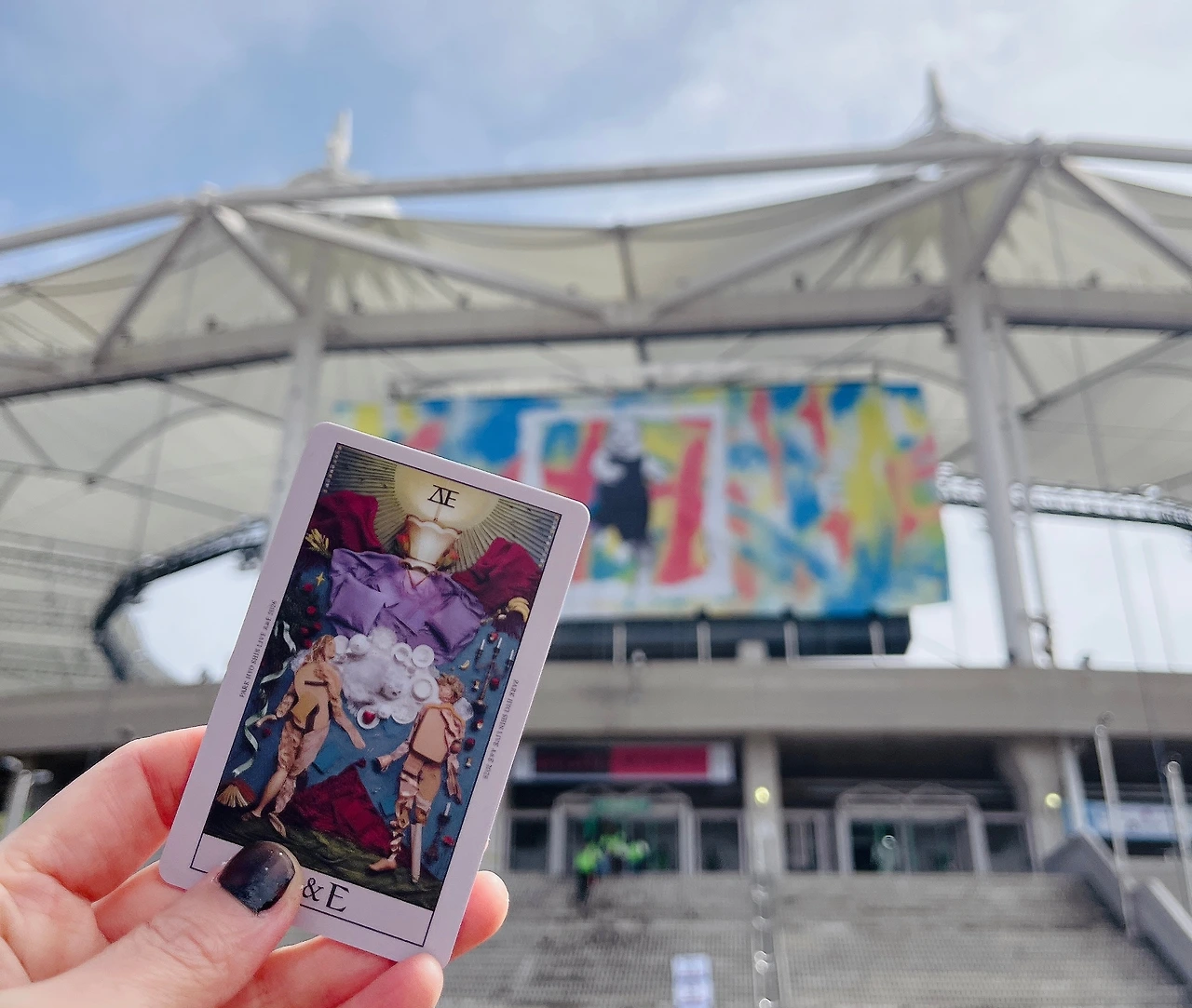 지하철역에서 나오자마자 나처럼 짐가방을 멘 사람들이 나와 같은 방향으로 가고 있었다. 가는 길이 꽃길이었고 코와 침샘을 자극하는 정갈한 거리 음식들로 더 심장이 콩닥거렸다. 우선 현장에서 티켓을 수령받고 콘서트 현수막이 걸려있는 경기장을 배경으로 인증사진을 찍는다. 이제 드디어 밥 타임~