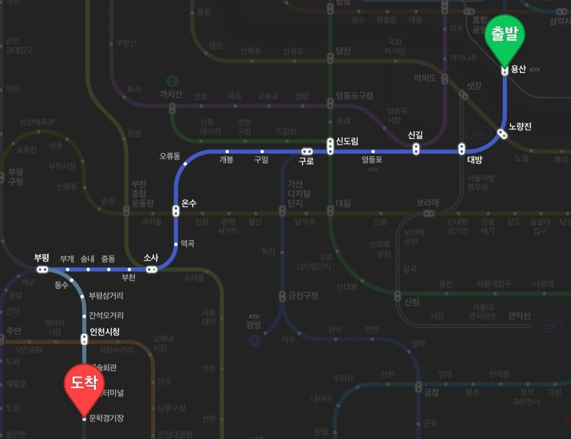 pm 1:33 부평행 지하철에 탑승 약 40분을 달리고 달려 환승 후