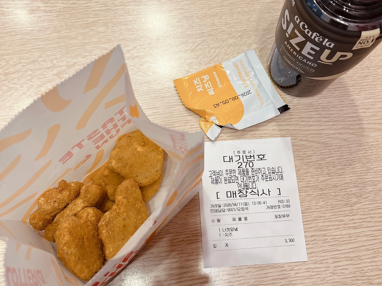 롯데리아에 들어가서 사이드 메뉴를 검색하다 치킨 너겟을 골라 치즈시즈닝을 팍팍 뿌려 야무지게 먹고