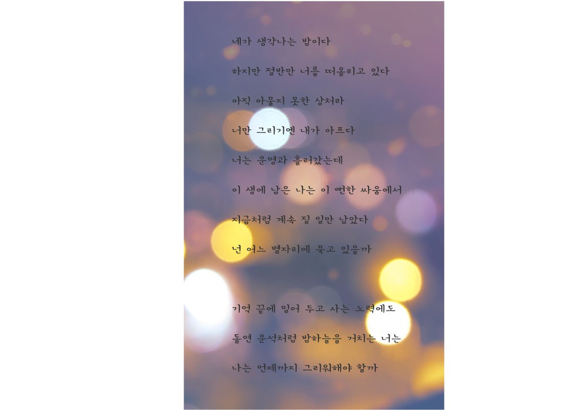 이렇게 써놓으면 어젯밤 무슨 생각했는지 너무 티가 나네요. 생사를 달리 한 소중한 사람이 저에겐 셋이 있습니다. 평생 그리워하면 저와 그분들의 인연은 비긴 거겠지요?