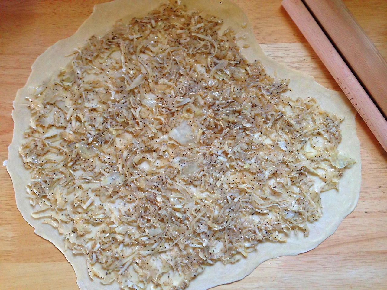 위 사진은 소스가 범벅이 되어 형태를 가능하기 어렵다. 짧게 설명하면, 반죽을 만들어 넓고 얇게 밀대로 편다. 그리고 채판에 간 감자를 그 위에 고루고루 펼쳐낸다. 여기까지만 상상하면 피자 모양인데, 반전은 그다음 과정이다. 요리를 하면서 사진을 찍기에는 역부족인데 다행히 이해를 도울 수 있는 사진을 찾았다. 다만, 옆의 사진은 다음에 소개할 독일 음식이라는 게 함정.