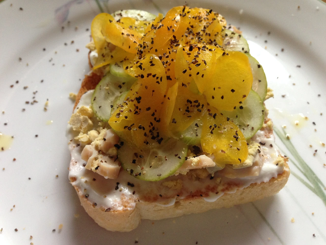 위의 사진은 이안의 샌드위치다. 딜 피클을 요구하는 바람에 또 반칙. 아래의 사진은 벌써 10번은 더 해 먹었던 요르단식 샌드위치 사진이다. 냉장고에 있는 채소를 털어먹기에도 딱이다. 어디 보자. 저 날은 피망과 오이가 있었나 보다. 오늘은 심지어 맛있는 사워도우 브레드도 있어서 난 내일 저녁에 내가 뭘 먹을지 이미 보인다.