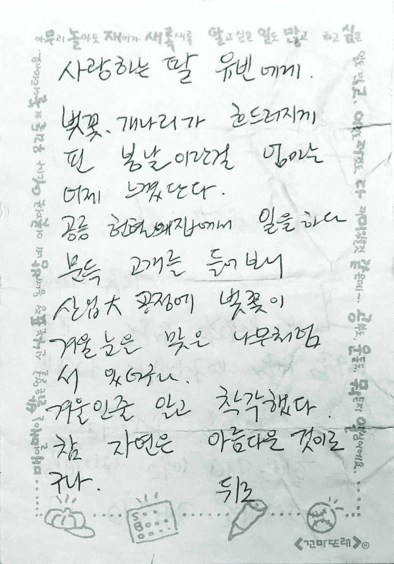 씩씩하게 자라주어 고맙기도 하고 자랑스