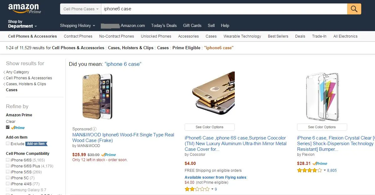 위의 예시는 iphone6 case라는 키워드로 검색 후 Prime Eligible 상품만을 필터링한 결과이다. 전체 100만 건이 넘는 상품 검색 결과에서 Prime 필터링을 하자 검색 결과가 1만건으로 확 줄어들었다. Amazon에서 막강한 구매력을 가진 Prime Member들의 검색 결과에서, 3rd Party Seller가 직접 배송하는 상품들은 본인의 상품을 어필할 기회조차 잃고 사라지고 만다. 반대로, FBA 서비스를 이용하는 Seller는 손쉽게 99%의 경쟁자들을 검색 결과에서 물리칠 수 있다. FBA이용이 단순히 물류 대행 이상의 효과를 가져다주는 것이다.
