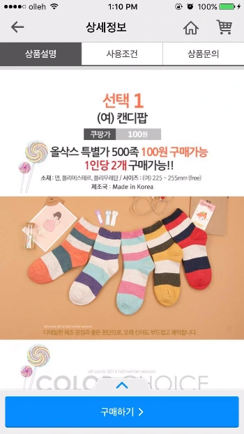 가격은 대략적으로 5켤레 묶음 판매 기준 $13 정도 선.. FBA 이용 수수료와 국제 배송 운임, 그리고 아마존 수수료 등을 고려해보면 낱개로 팔기보단 번들링이 더 적합할 테니 적절한 전략 같다. 게다가 상품평도 많고, 내용도 긍정적이다. 한국 캐릭터 양말이 은근 미국에서 인기가 있는 듯 확신이 들어 바로 쿠팡에서 100원짜리 양말을 살 요량으로 접속을 했다... 하지만!