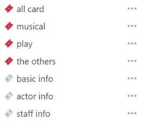 상세 페이지 속에는 수많은 정보가 입력돼 있지만 카드에서는 중요한 정보만 보이도록 설정했다. 썸네일 이미지는 가장 인상적이어던 배우나 무대 장면을 찾아 등록한다. 이미지를 저장해서 등록하지 않고 이미지 주소만 복붙 하면 돼 편리하다. 단지 그 이미지 주소가 사라지면 내가 등록한 이미지도 종종 백지가 된다. 또 제목 앞 이모지를 설정하는 소소한 재미가 있는데, 해당 공연을 표현할 시그니처 이모지를 잘 찾아냈을 때 뿌듯하다. '같은 공연을 본 사람이라면 분명 이 이모지에 공감할 거야' 하며.