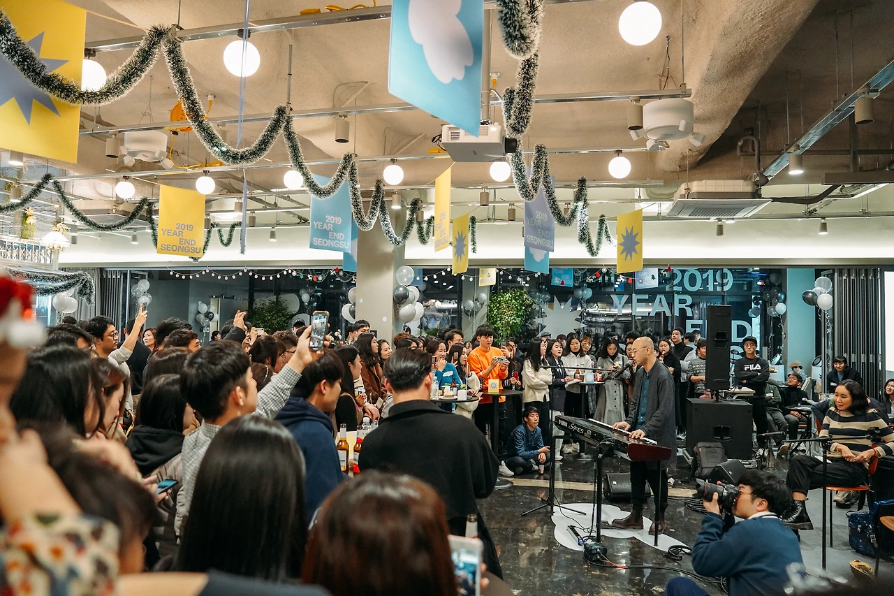 성수시작점은 지어질 때부터 임팩트 지향 조직과 함께 논의해 공간을 디자인했다. 각자도생 하던 임팩트 지향 조직은 이제 같은 공간에서 서로가 존재함을 인지하고 업을 이어나간다. 공간의 형태 역시 목적을 따른다. 복층으로 뚫린 라운지는 다른 층을 이용하는 멤버일지라도 자주 마주칠 수 있도록 유도한다. 다양한 행사나 프로그램을 운영하기 위한 공용 공간이 곳곳에 있다. 다양성을 반영해 지속적으로 공간을 개선하며, 탄소배출량 절감을 위해 시설을 점검한다.
