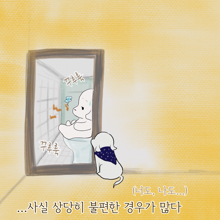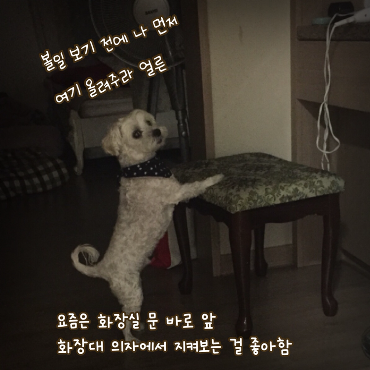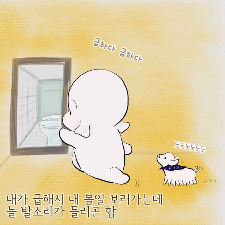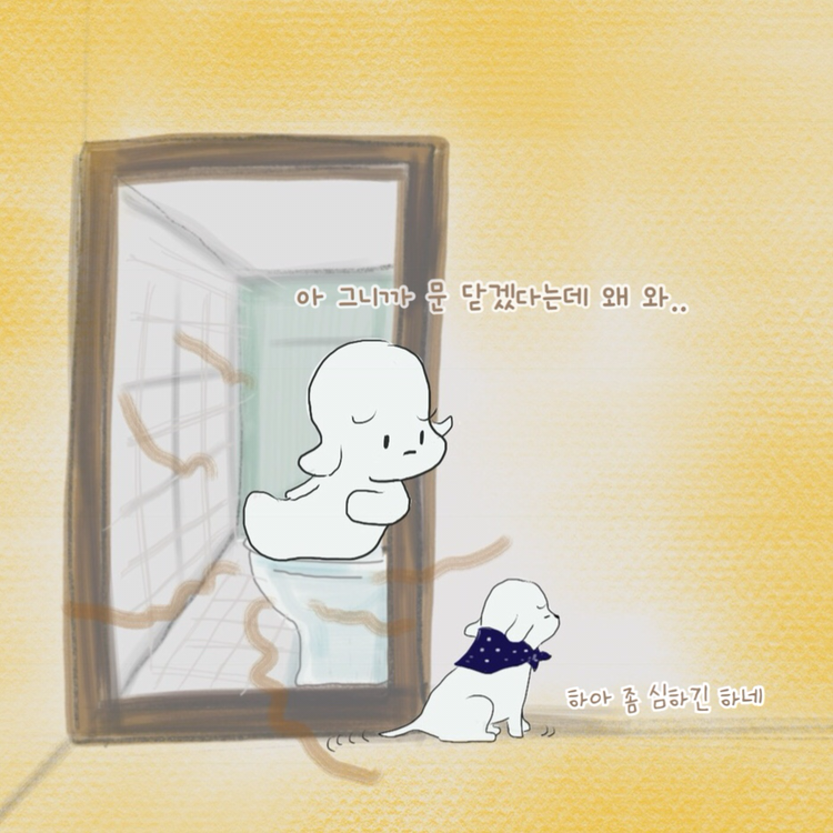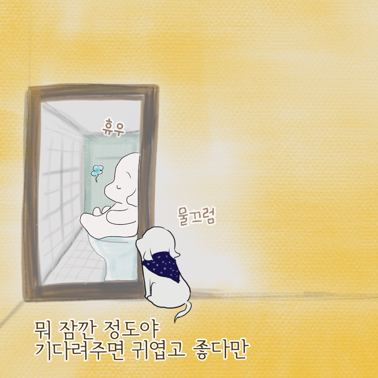 왜 그렇게 화장실 앞을 지켜주나 했는데, 댕댕이들한텐 너무나 무서운 곳이라(목욕을 하는!) 지켜주는 거라면서요? 오구오구 이 사랑꾼들.