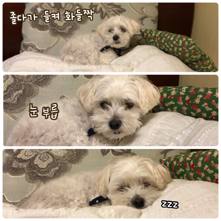 졸릴 땐 잠시라도 누워서 편히 자고 일어납시다 .... 해피 너는 그냥 자도 되잖아?