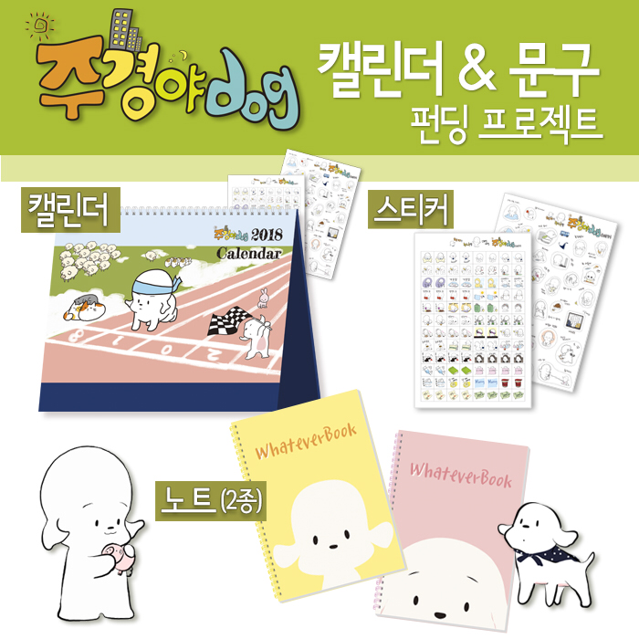 <공지> 드드드드드드디어 오픈! 주경야dog 해피와 누나의 모습을 담은 2018 달력, 스티커, 노트 제작 펀딩프로젝트가 시작됐어요!!