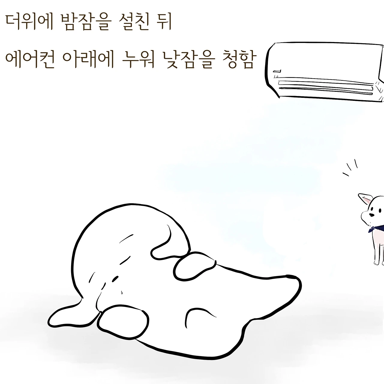 찰떡같이 붙어있는 건 좋은데 덥긴 더워요... 핫팩같아.. #dogstagram #maltese #dogtoon #instatoon #yourtemperature #cartoon #puppylover #summer #멍스타그램 #독스타그램 #인스타툰 #개툰 #짧툰 #개불출 #더워덥다고 #말티즈 #우쭈쭈내강아지 #너의체온 #그래도이쁨 #주경야dog