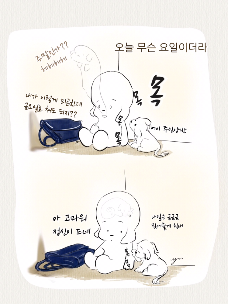 <주경야dog> 출간 작가. 해피와의 추억을 마음에 담고 귀여운 꼬마와 지지고볶으며 살아가는 워킹맘. 다시 글 쓰고 싶습니다.