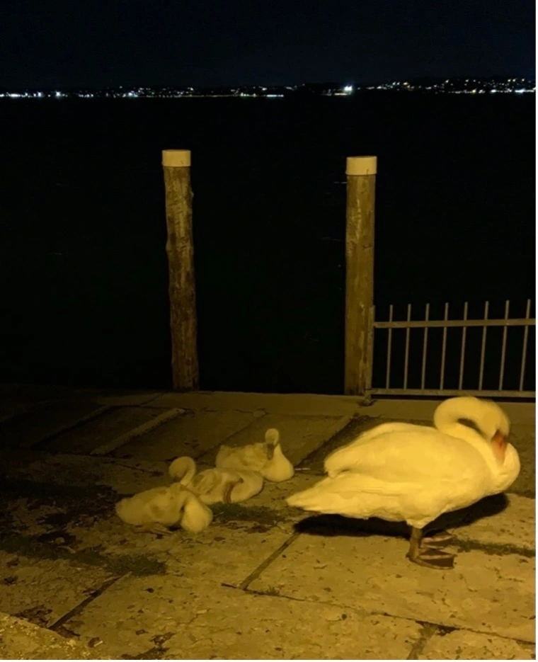 이곳의 여름밤은 특별하다. 시르미오네의 여름밤은 본인이 속한 일상을 떠나 휴가를 즐기러 온 사람들의 생기로 반짝인다. 호수 돌담에 앉아 대화하는 연인들, 젤라또를 먹으며 산책하는 사람들을 보고 있으면 정말 외국에 있는 느낌이 든다. 올드타운 초입에 있는 젤라또 집에서 아이스크림을 샀다. 요거트 맛과 무화과 치즈케이크 맛을 골랐다. 젤라또 위에는 항상 몽실몽실한 크림을 올려 줘야 한다. 젤라또를 가지고 호숫가 돌담에 걸 터 앉았다. 바로 앞에 백조 가족이 있었다.