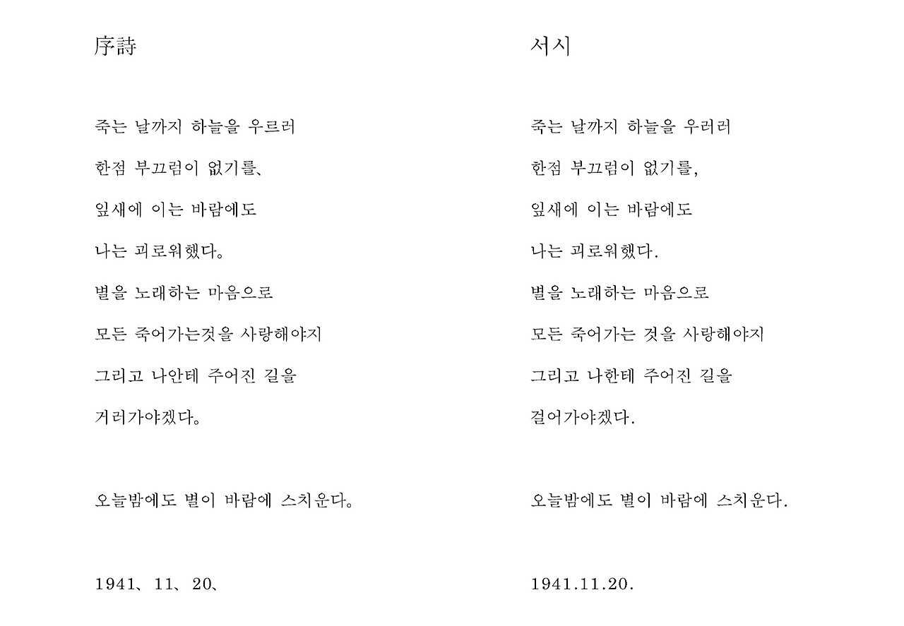 일본인 간수가 전하길, 무슨 뜻인지는 모르나 마지막 외마디 소리 지르고 운명했다고. 강처중은 짐작건대 대한독립만세를 부르는 듯했다며 추모했다. 죽은 이는 말이 없으니, 벗이었던 그의 말을 믿어볼 수밖에. 다만, 죽음 앞에서 딱 한 음의 외마디. 그마저 그의 시와 같다. 어린 나이 제 뜻하지 않게 닥친 영면을 앞두고 그는 어떤 말을 하고자 했나?