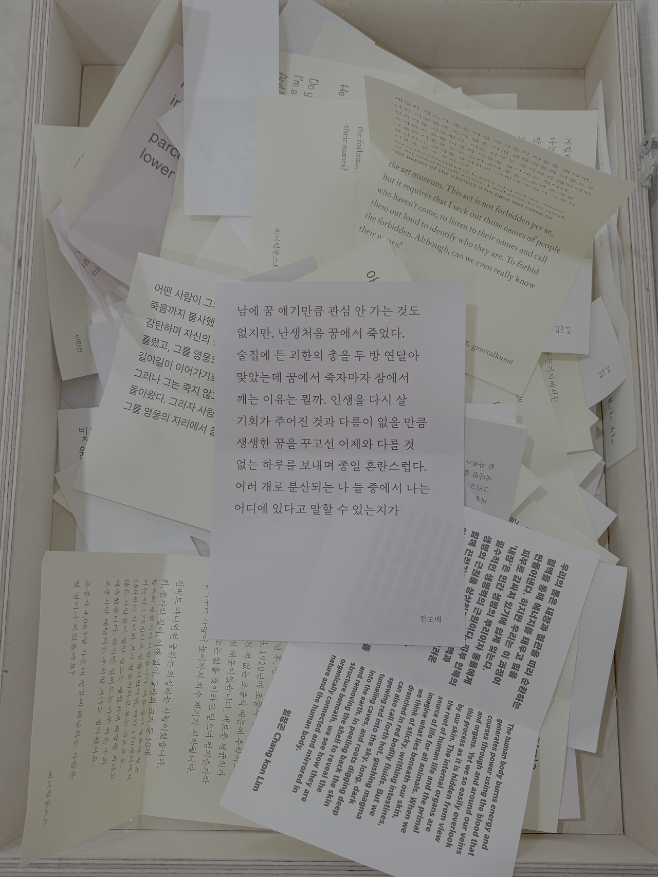 누군가의 기둥이 무너지지 않도록, 글로 위로할 수 있도록, 죽음 앞 내 외마디가 잘 전해질 수 있도록, 복제품도 함께 묻어질 수 있도록.