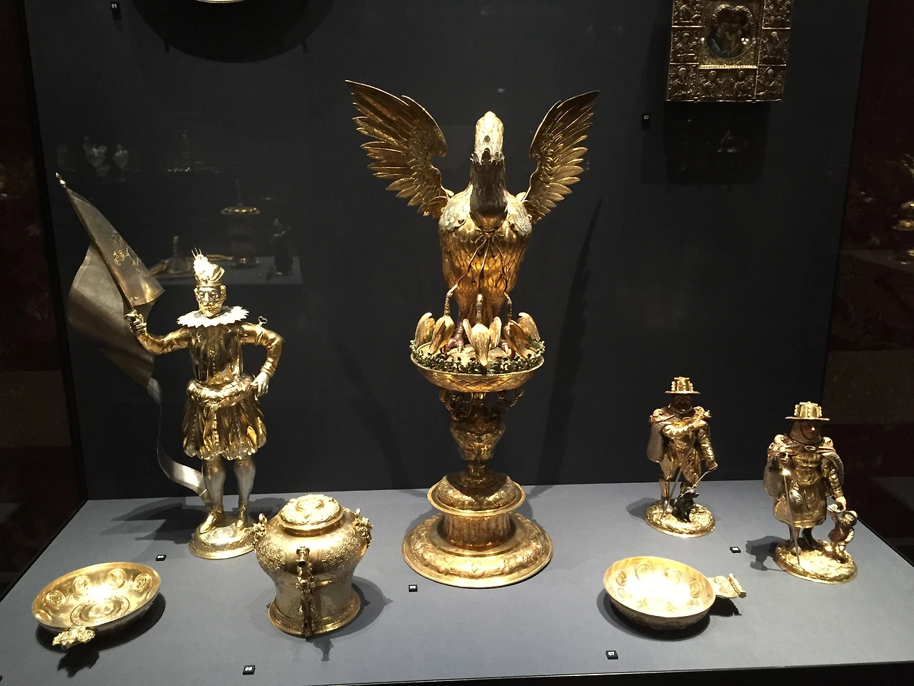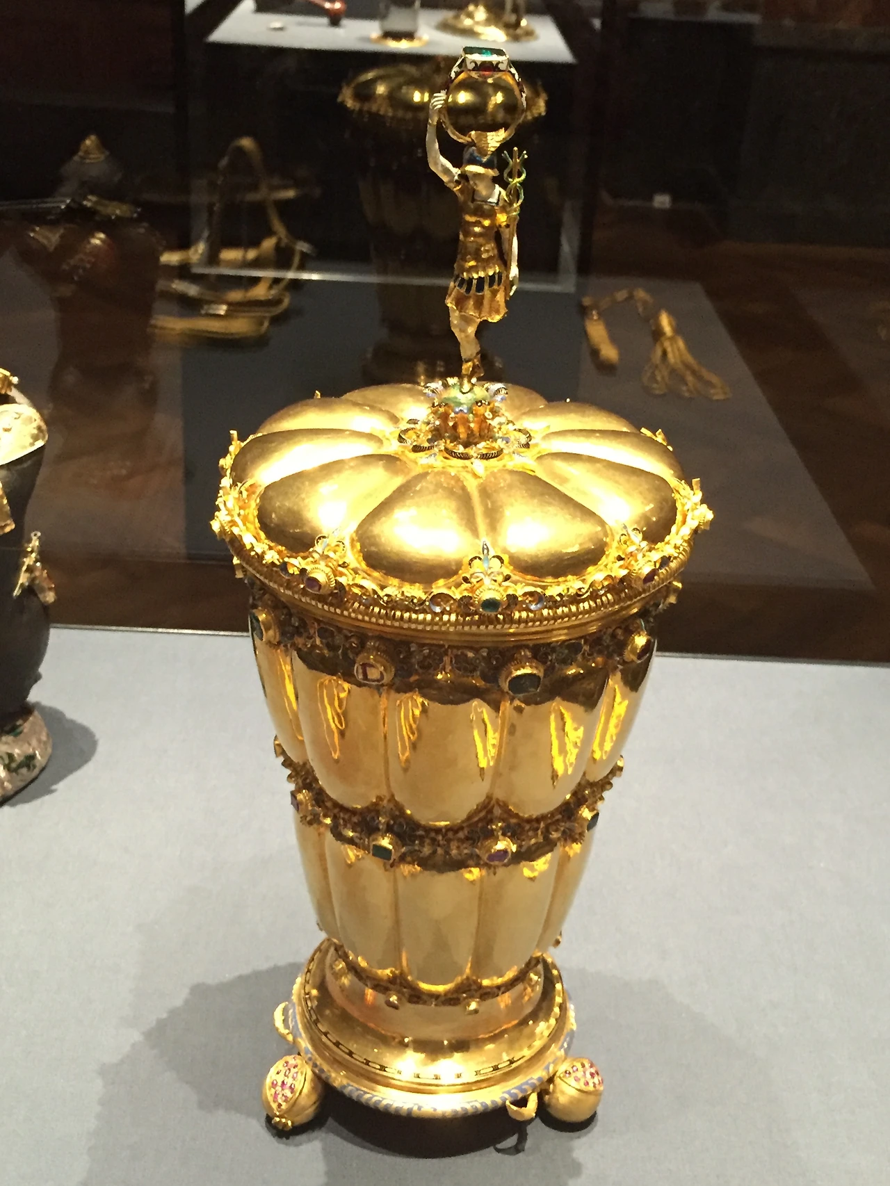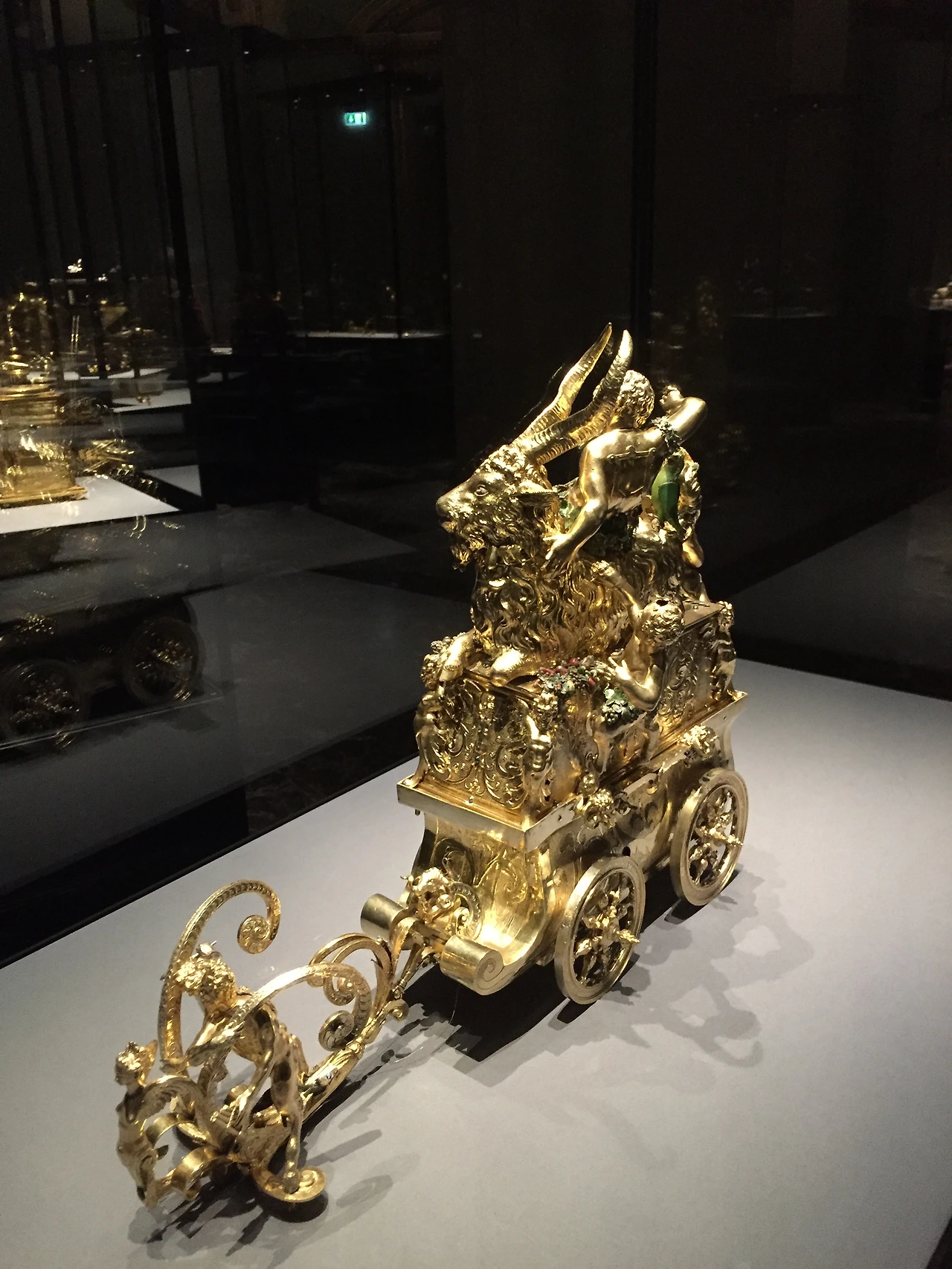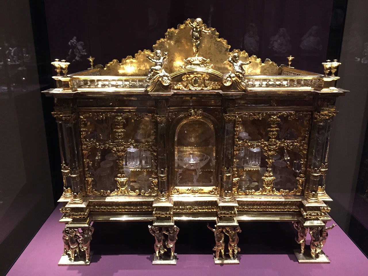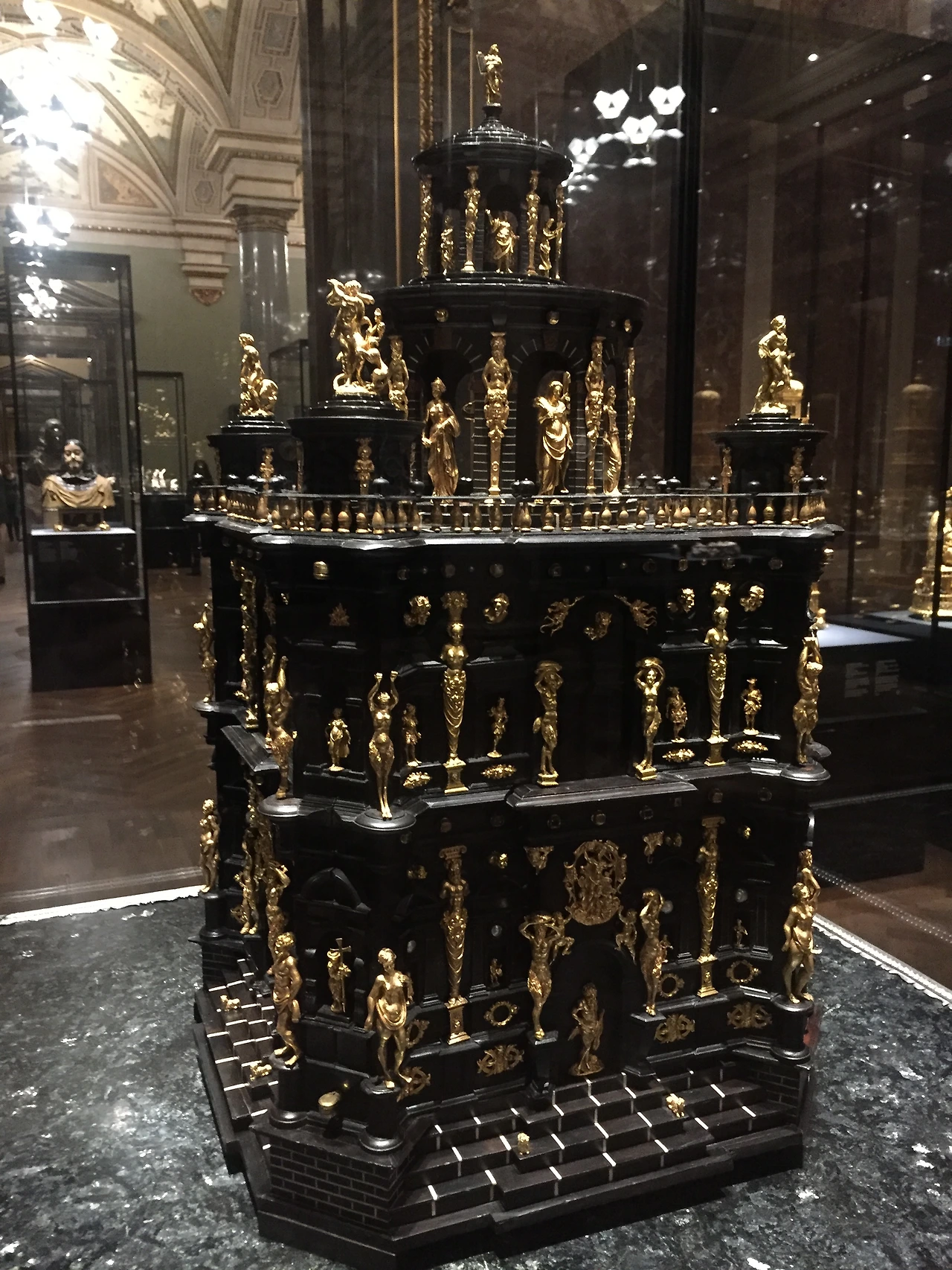 0.5층은 크게 예술공간, 이집트 동양 수집, 고대 유물 수집, 특별 전시로 구성되어있다. 주로 공예품이 많다. 금빛의 화려한 공예품들이 전시실 조명을 받으니 아침 햇살만큼이나 눈이 부시다. 뭔지 모르고 그냥 봤을 땐 장식용으로만 생각했는데 친절하신 오디오 가이드 선생님 말씀에 실용적인 기능이 있는 작품들이란다. 그중 가장 대표적인 것이 티켓에도 나와있는 소금통, '첼리니 솔트 셀라(Cellini Salt Cellar)' 다. 이탈리아 조각가 벤베누토 첼리니(Benvenuto Cellini)의 작품으로 이탈리아어로 소금 그릇을 뜻하는 '살리에라(Saliera)'라는 이름을 가지고 있기도 하다.