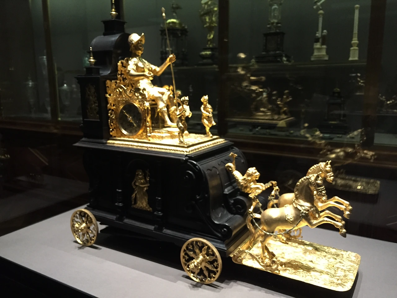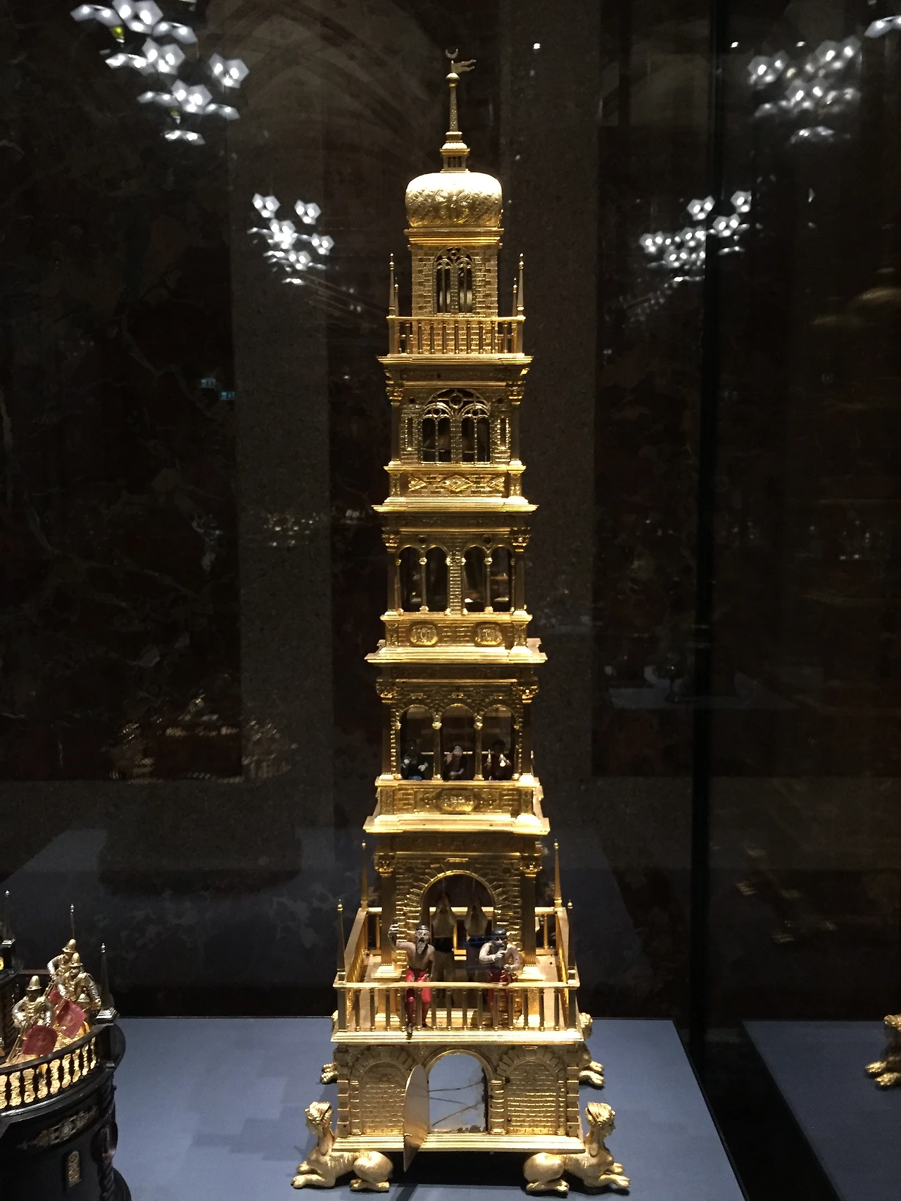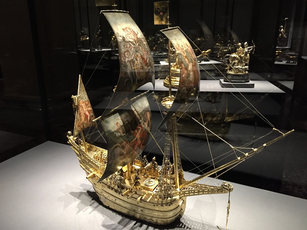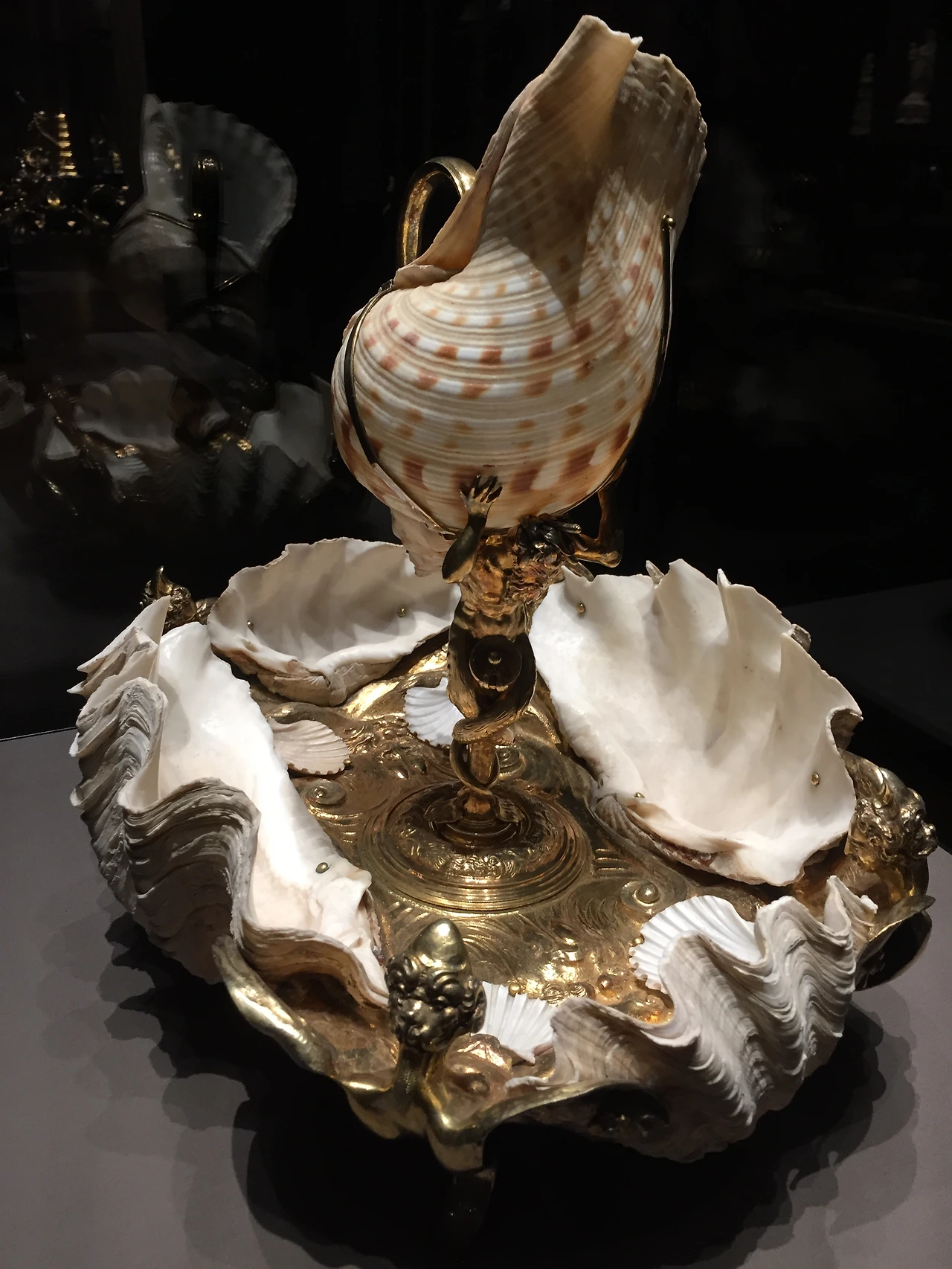 0.5층은 크게 예술공간, 이집트 동양 수집, 고대 유물 수집, 특별 전시로 구성되어있다. 주로 공예품이 많다. 금빛의 화려한 공예품들이 전시실 조명을 받으니 아침 햇살만큼이나 눈이 부시다. 뭔지 모르고 그냥 봤을 땐 장식용으로만 생각했는데 친절하신 오디오 가이드 선생님 말씀에 실용적인 기능이 있는 작품들이란다. 그중 가장 대표적인 것이 티켓에도 나와있는 소금통, '첼리니 솔트 셀라(Cellini Salt Cellar)' 다. 이탈리아 조각가 벤베누토 첼리니(Benvenuto Cellini)의 작품으로 이탈리아어로 소금 그릇을 뜻하는 '살리에라(Saliera)'라는 이름을 가지고 있기도 하다.