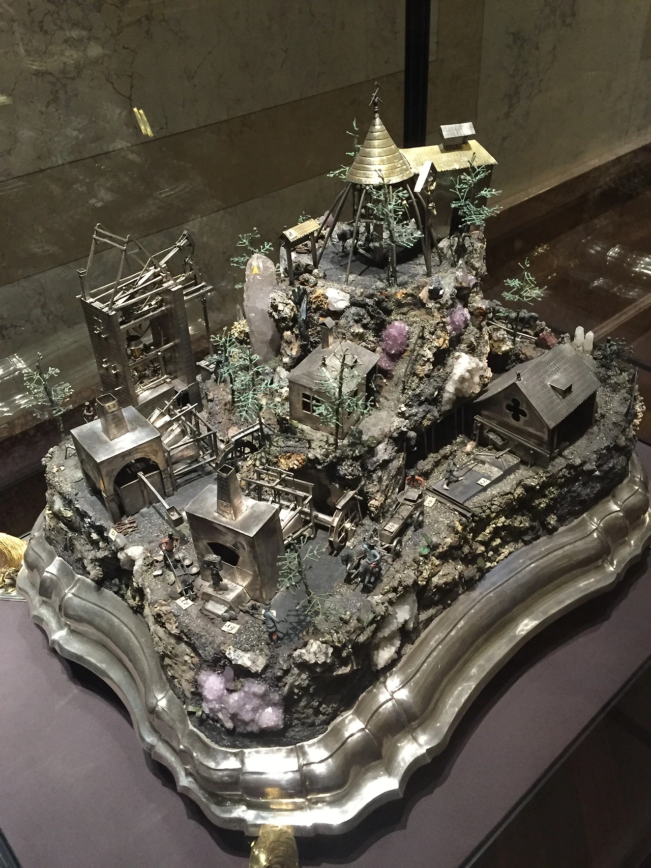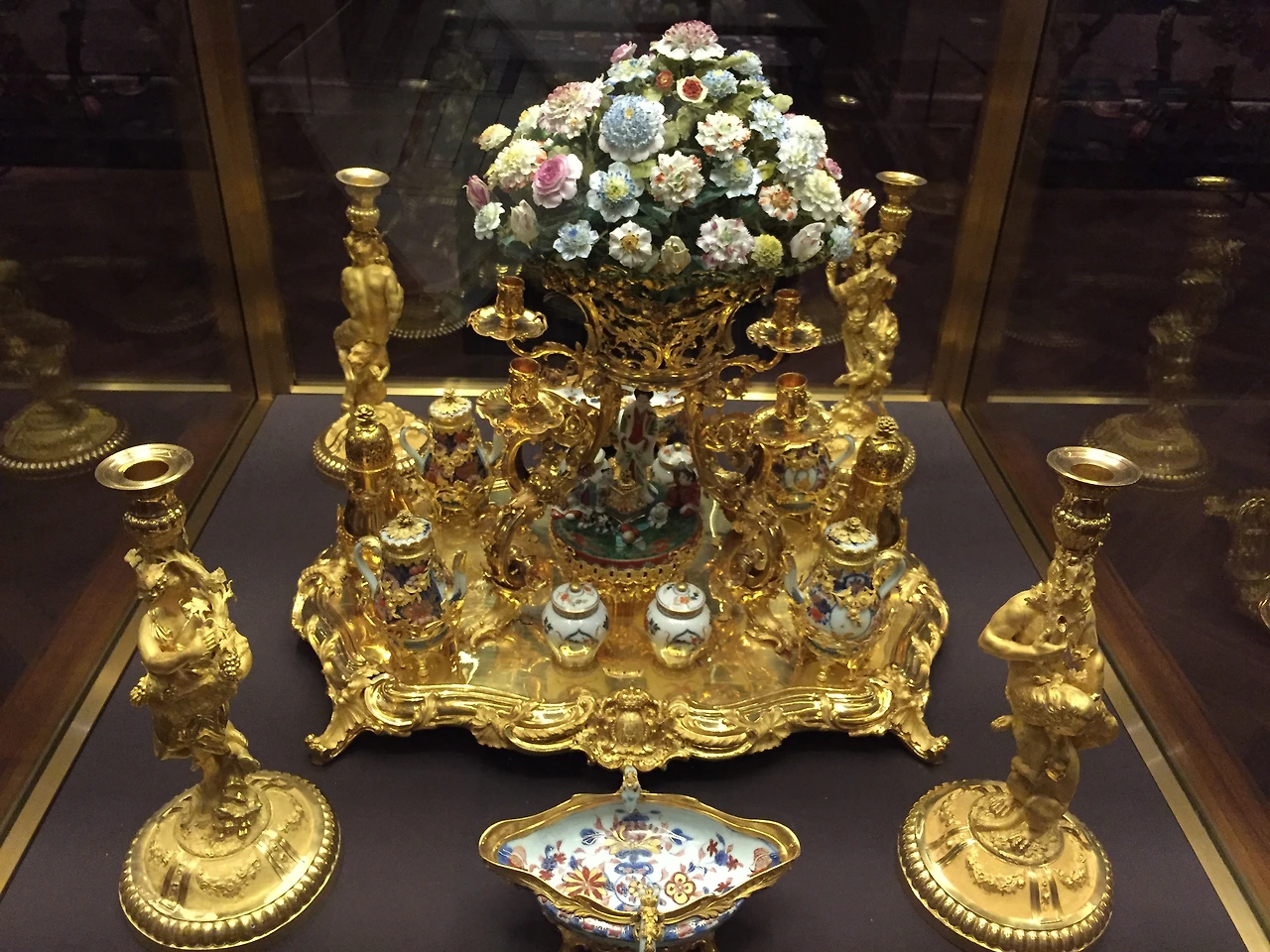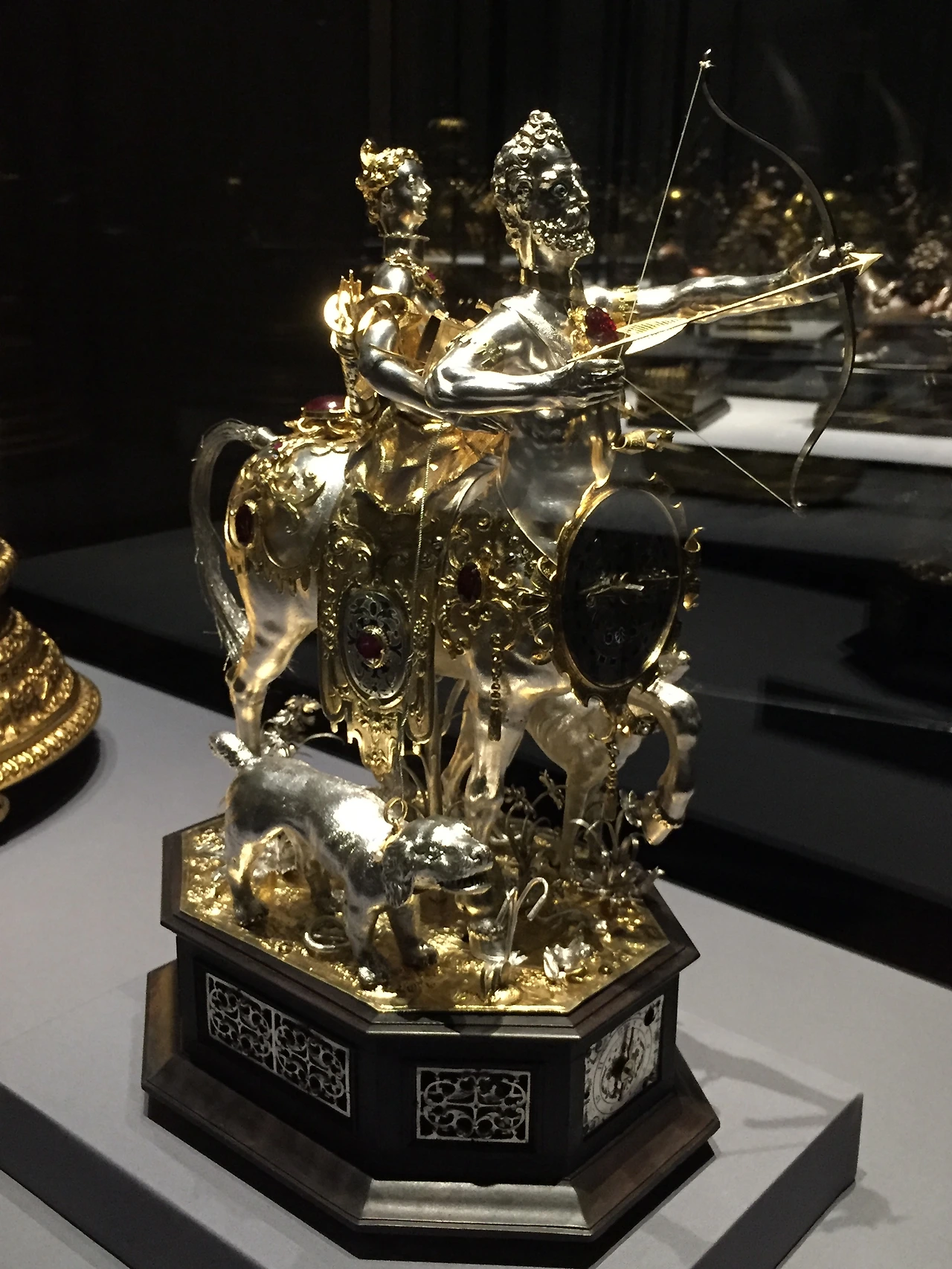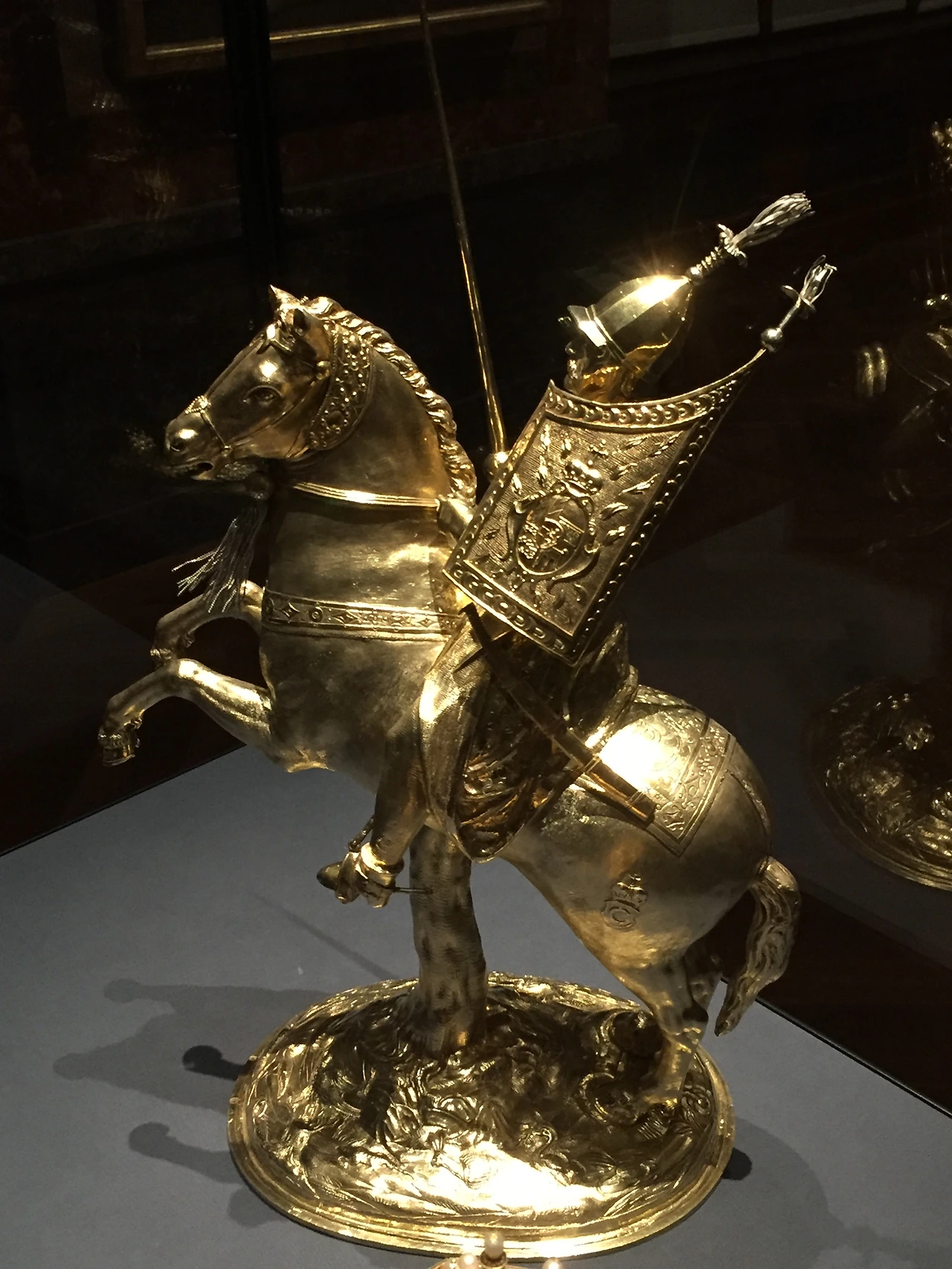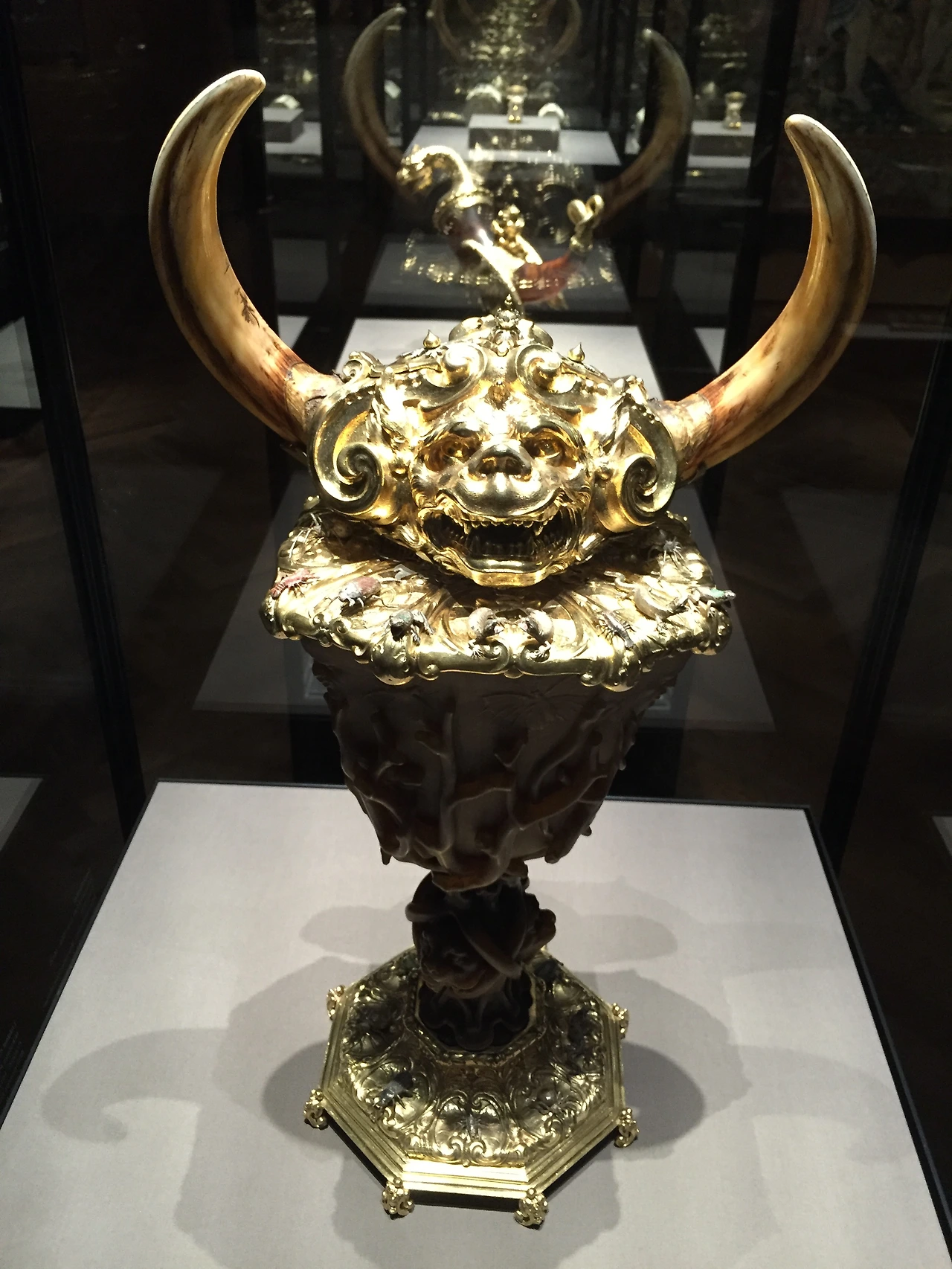 0.5층은 크게 예술공간, 이집트 동양 수집, 고대 유물 수집, 특별 전시로 구성되어있다. 주로 공예품이 많다. 금빛의 화려한 공예품들이 전시실 조명을 받으니 아침 햇살만큼이나 눈이 부시다. 뭔지 모르고 그냥 봤을 땐 장식용으로만 생각했는데 친절하신 오디오 가이드 선생님 말씀에 실용적인 기능이 있는 작품들이란다. 그중 가장 대표적인 것이 티켓에도 나와있는 소금통, '첼리니 솔트 셀라(Cellini Salt Cellar)' 다. 이탈리아 조각가 벤베누토 첼리니(Benvenuto Cellini)의 작품으로 이탈리아어로 소금 그릇을 뜻하는 '살리에라(Saliera)'라는 이름을 가지고 있기도 하다.
