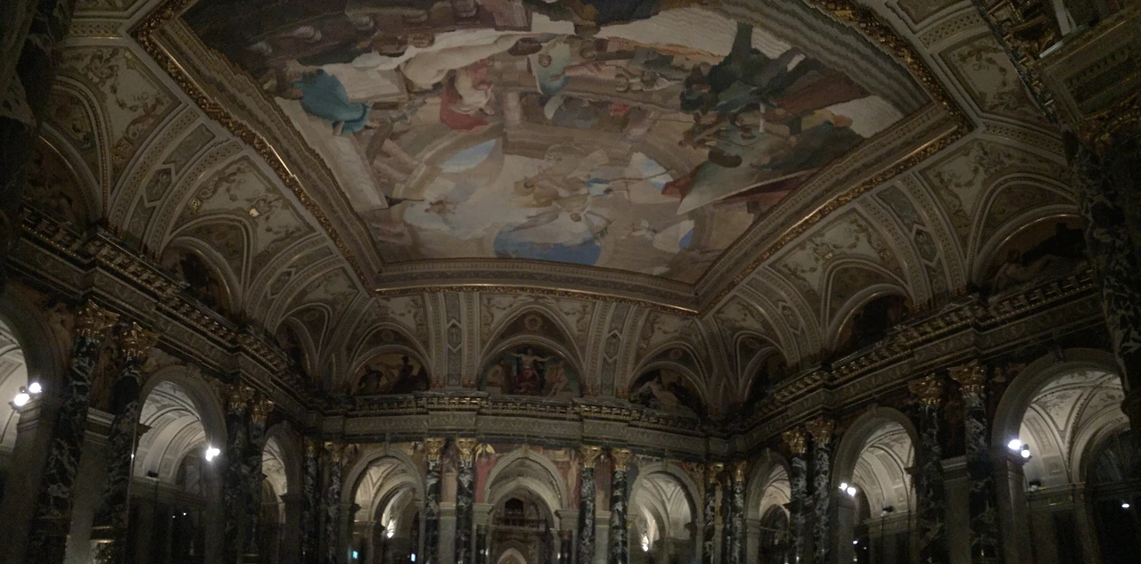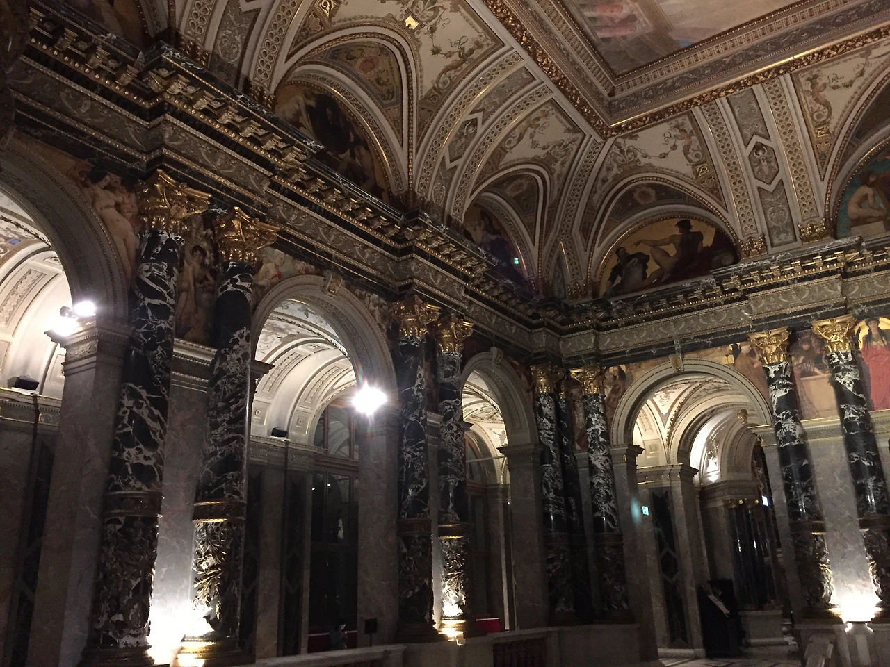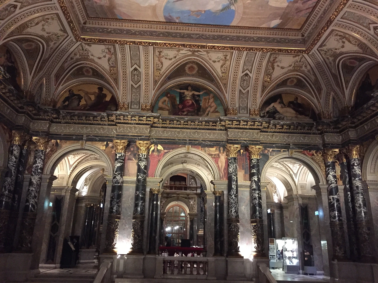 앞서 1층 회화 갤러리에서의 끝이 좋았기 때문일까? 로비의 천장 벽화들이 눈에 들어온다. 지금까지 본 천장 벽화 중 가장 인상 깊었던 천장 벽화는 바티칸 시국(Stato della Citta del Vaticano) 시스티나 성당(Cappella Sistina)의 천장 벽화지만, 이 곳의 천장 벽화도 그에 못지않다. 천장 가운데 그림을 중심으로 각 외곽의 그림들이 서로 연관된 하나의 이야기를 가지고 있다. 그 내용은 모르지만 마찬가지로 그림 속 이야기를 통해서 우리들에게 어떤 메시지를 전달하고 있을지도 모른다. 그렇기 때문에 빈에 왔다면 이 곳 빈 미술사 박물관을 꼭 한 번쯤은 찾아야 한다. 비록 미술에 잼병이 일지라도 자신만의 시선으로 작품을 보면 뜻밖의 깨달음이나 배움을 얻게 되는 행운이 따를 수도 있다. 빈을 찾는 많은 사람들에게 그 행운이 함께하기를 바라며 나는 여기서 이만...