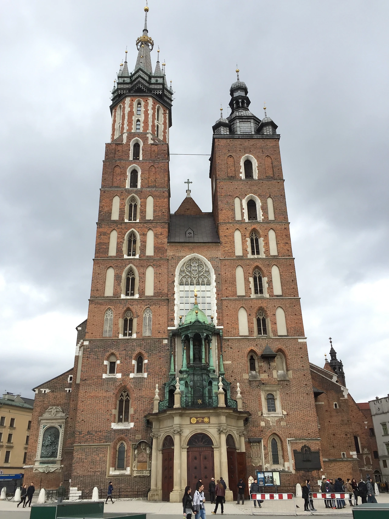만약 이런 느낌을 기대하고 폴란드 크라쿠프의 성 마리아 성당(Bazylika Mariacka)을 찾았다면, 어쩌면 실망할지도 모르겠다. 크라쿠프 성 마리아 성당은 크기 면에서는 앞서 말한 유럽의 유명 성당들에 뒤지지 않지만 화려함과는 조금 거리가 있다. 성당 입구와 꼭대기의 두 첨탑이 나름의 화려함을 담당하고는 있지만 다른 유럽의 유명 대성당(스페인 사그라다 파밀리아 성당(가우디 성당), 바티칸 시국의 성 베드로 성당(바티칸 대성당), 오스트리아 빈의 성 슈테판 대성당, 이탈리아 밀라노 대성당(밀라노 두오모), 피렌체 산타마리아 델 피오레 대성당(피렌체 두오모)등)과 비교하면 새발의 피다. 전체적으로 붉은 벽돌만을 이용해서 지은 성 마리아 성당의 모습은 꼭 우리나라에서 흔히 볼 수 있는 동네 교회 같기도 하다.(아시겠지만 우리나라는 붉은 벽돌 천국이다.) 그래서일까? 소박하니 심심한 게 왠지 친근하다.