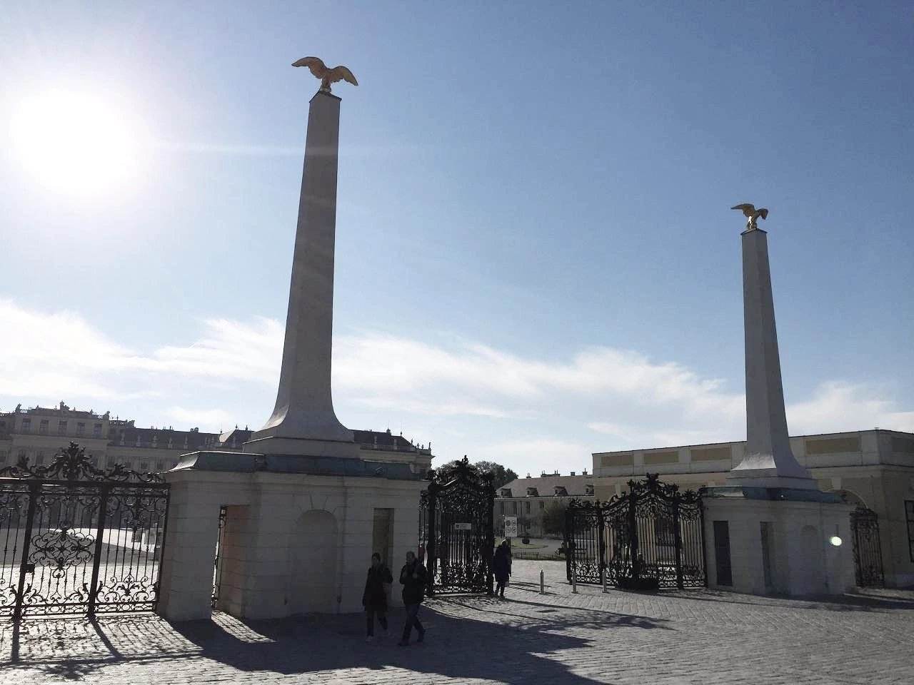 쇤부른 역에서 걷기를 10분, 드디어 쇤부른 궁전에 도착했다. 가장 먼저 정문을 지키는 두 마리의 황금 독수리가 나를 환영해준다. 정문을 통과해 쇤부른 궁전과 마주하자 가을 아침 공기처럼 상쾌한 전경이 내 몸속 깊은 곳까지 상쾌하게 정화시킨다.