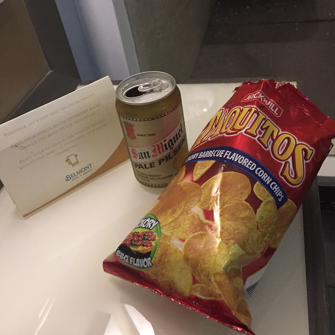 호텔 근처에 골프장과 니노이 아키노 국제공항(Ninoy Aquino International Airport)이 있어 주변도 온통 호텔이나 리조트였다. 때문에 기대했던 소소한 마닐라의 동네 풍경은 보지 못했다. 덕분에 예상했던 것보다 시간도 많이 남았다. 아쉬운 마음에 호텔로 돌아가는 길, 편의점에 들렀다. 열심히 물건을 진열 중인 직원에게 필리핀에서 맥주 안주로 가장 즐겨먹는 과자 추천을 부탁했다. 씩 웃으며 손가락이 가리키는 방향을 따라가니, 감자칩이다. 역시 남녀노소 국적불문 맥주와 감자칩은 최고의 콤비다. 숙소로 감자칩 봉지를 뜯자 감자의 고소한 향과 짠내가 코를 자극한다. 산미구엘(San Miguel) 한 모금 들이키고 감자칩 하나를 입에 넣는다. 혀 끝에서부터 입안 전체로 짭짤한 기운이 퍼진다. 이렇게 마닐라에서의 시간이 지나간다. 비록 짧은 시간 머물렀지만 여운은 오래 남을 것 같다. 혀끝에서 맴돌고 있는 감자칩의 짭짤한 기운처럼...