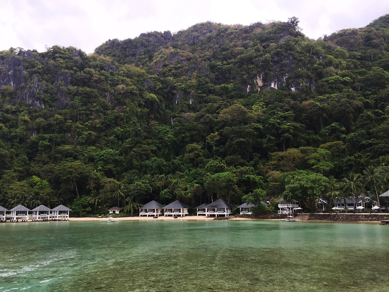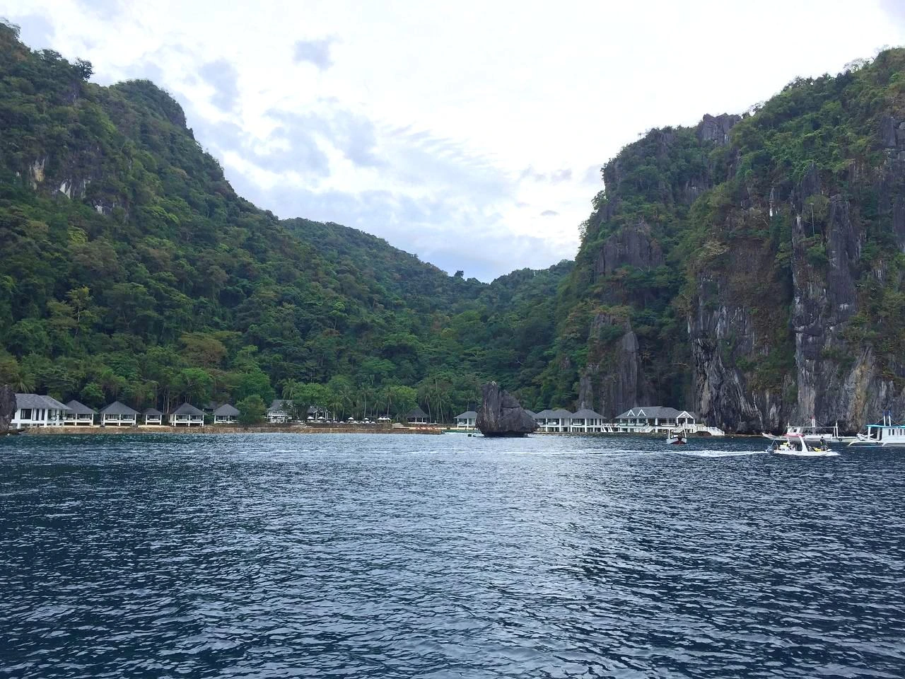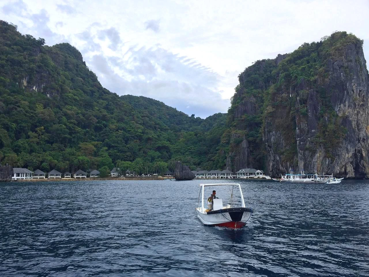 넘실거리는 파도에 흔들흔들, 강한 바닷바람을 이겨내며 망망대해를 달린 끝에 저 멀리 *엘 니도 라겐 아일랜드 리조트(El Nido Lagen Island Resort)가 눈에 들어온다. 세모 뾰족한 회색 지붕들이 촘촘히 박혀있는 것 같은 모습이 마치 원주민 마을 같다. 초록 잎이 무성한 숲과 높은 기암절벽은 마을을 감싸듯 안고 있다. 세상에 알려지지 않은 신대륙을 찾은 것 같은 설렘과 감동이 교차했다. 신대륙 원주민이 우리를 마중 나오는 것일까? 멀리서 작은 보트 하나가 다가왔다. 선착장까지는 이 작은 보트를 이용해야 한단다. 그렇게 보트로 갈아타고 마침내 라겐 아일랜드에 감격적인 첫발을 내디뎠다.