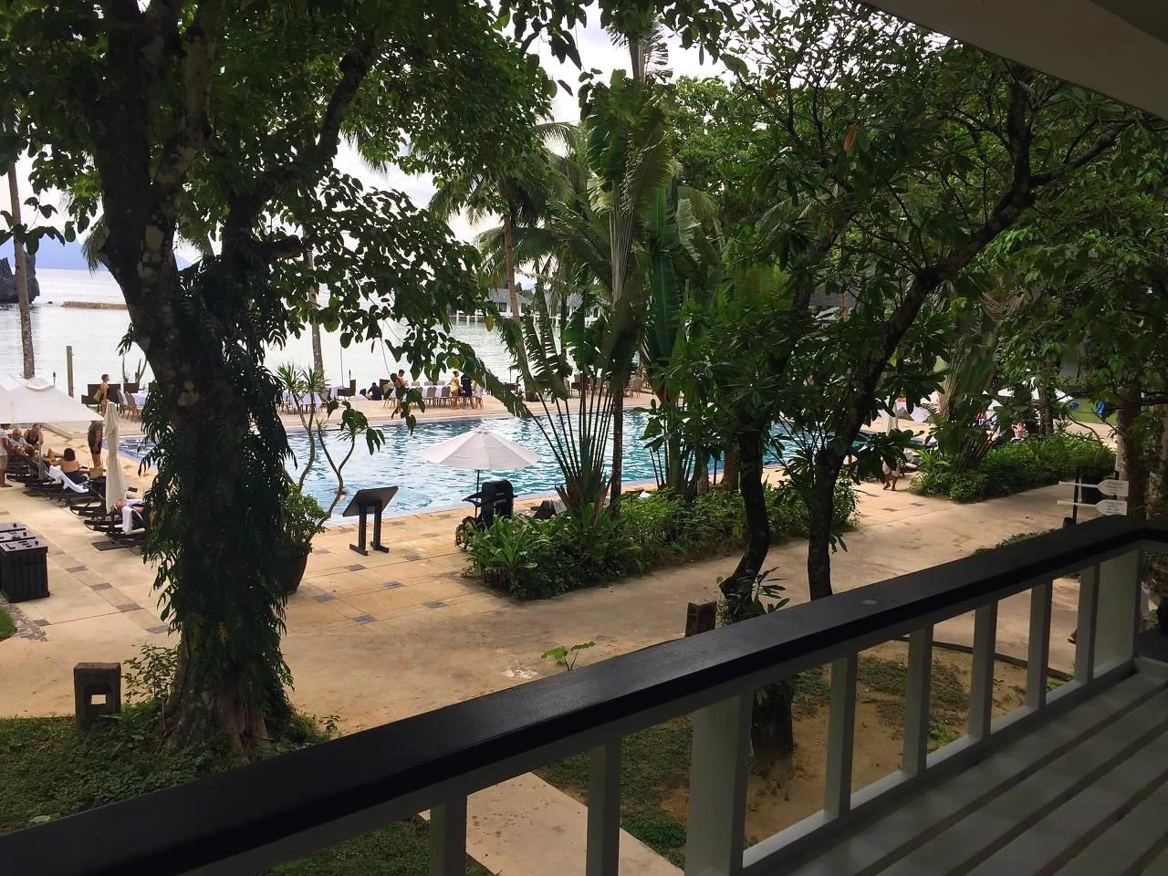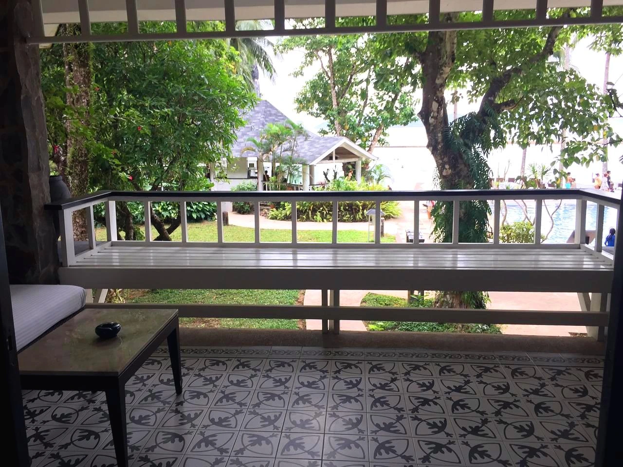욕실을 나와 잠시 침대에 몸을 눕혔다. 침대에서 정면으로 보이는 테라스 유리문으로 살며시 햇살이 비췄다. 누워서 찔끔 맛보기에는 아까운 햇살이다. 몸을 일으켜 광합성도 할 겸 테라스 구경도 할 겸 유리문을 열었다. 순간 축축하고 습한 공기가 내 얼굴을 강타했지만 눈앞에 펼쳐진 풍경과 분위기에 눌려 아무런 불쾌감도 주지 못했다. 야자수를 비롯해 곳곳에 심어진 나무들이 숲 속에 있는 것 같은 착각을 불러일으켰다. 숲 한가운데에는 수영장이 있고 사람들은 한가로이 유영하고 있다. 선베드에서는 선탠이나 독서, 낮잠을 자며 각자의 여유를 즐기고 있다. 이 모습을 지켜보고 있는 것만으로도 마음이 여유로워졌다. 테라스에서 하루 종일 누워만 있어도 좋을 것 같다.