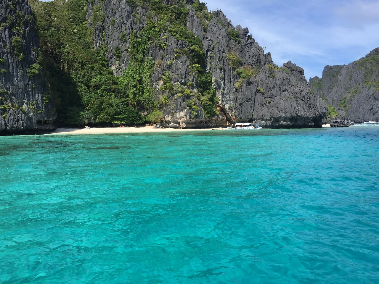 이번 팔라완 여행에서의 마지막 스노클링 스폿은 시미주 아일랜드(Shimizu Island)다. 시미주에 도착했을 때, 유난히도 날씨가 좋았다. 구름 한 점 없이 청명한 하늘, 그 아래 시미주의 바다는 푸름을 넘어서 연한 초록 빛깔의 유리창 같다. 배위에서도 바닷속을 충분히 들여다볼 수 있을 만큼 투명한 유리. 웅장한 기암절벽을 뒤로 세워두고 배 위에 앉아 사진을 찍으면 작은 네모 프레임에 누가 들어간들 인생 사진이 된다. 왜 다이버들이 엘 니도의 많은 섬들 중 이 시미주를 가장 사랑했는지 굳이 설명하지 않아도 알 것 같았다.