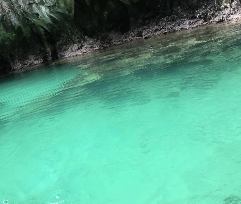 카약 1대만이 간신히 지나갈 듯한 아치형의 좁은 입구가 마치 미지의 세계로 들어가는 비밀통로 같다. 그 좁은 문을 통해 카약이 한대씩 나가고 들어가고 한다. 먼저 연달아 2~3대가 나오면 다음엔 연달아 2~3대가 들어가고, 약속이라도 한 듯 서로 번갈아가면서. 이제 우리 차례다. 스무스하게 입구를 통과하려는데 툭! 툭! 카약 옆면에 약간의 상처를 입히며 통과했다. 뭐 어쨌든, 스몰 라군으로 입성!!!