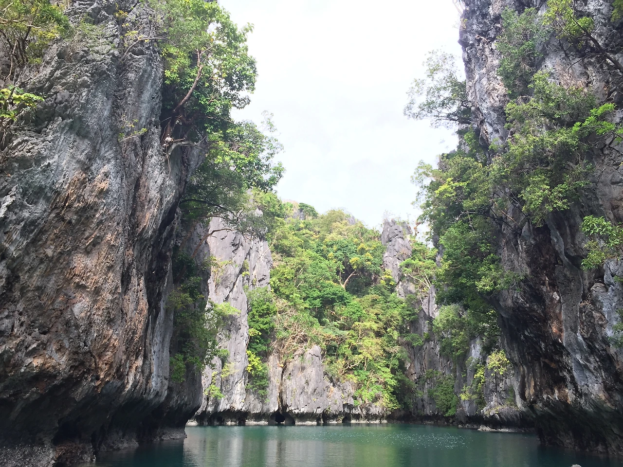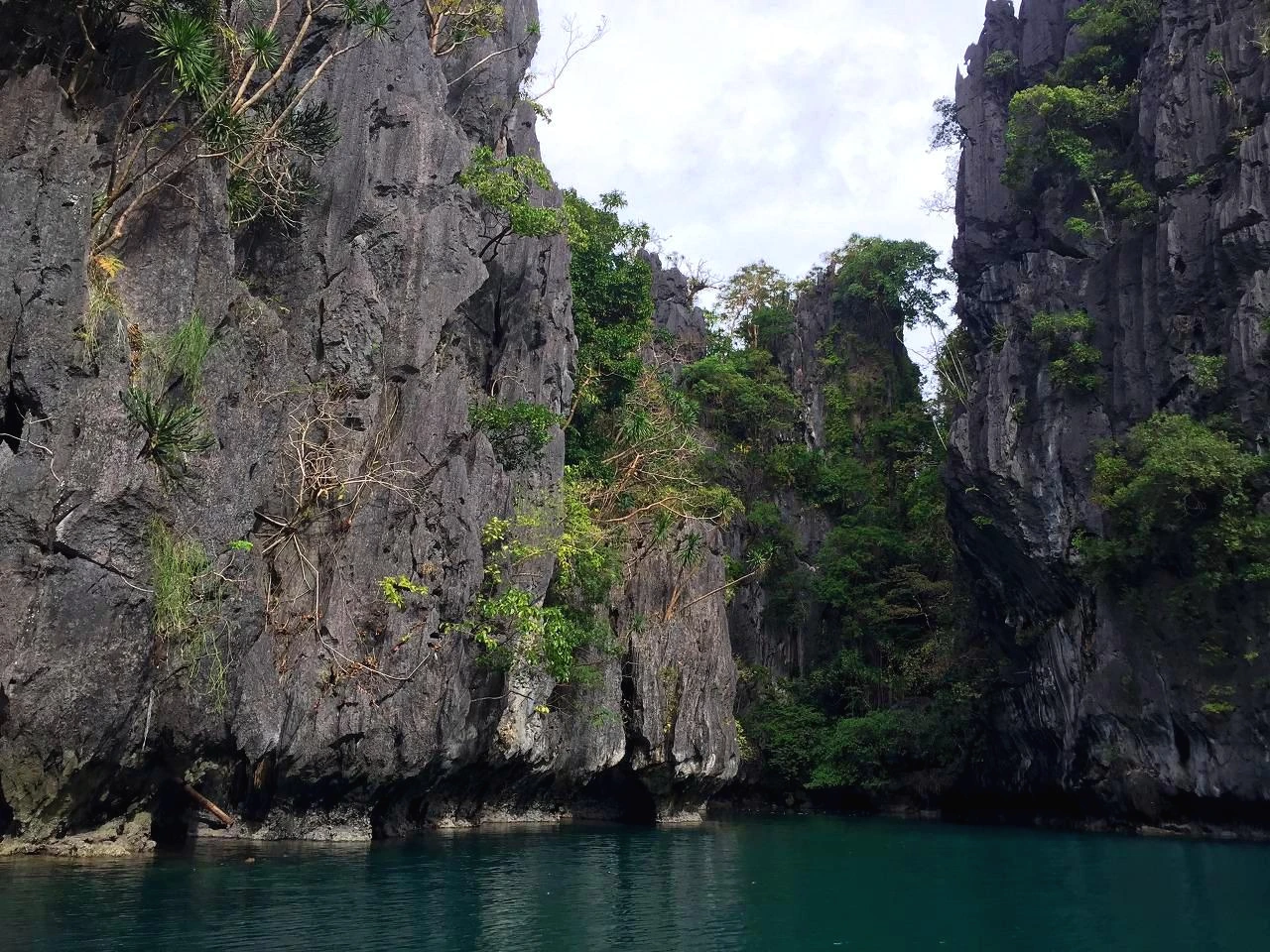 아저씨의 미소가 기억 속에서 희미해져 갈 때쯤 빅 라군 초입에 도착했다. 말 그대로 빅(Big)! 하다. 수심이 얕아 카약이나 스노클링, 다이빙을 즐길 수 있었던 스몰 라군과는 달리 빅 라군은 수심이 깊어 초입까지만 이런 액티비티가 가능하고 안쪽은 방카를 타고 관람해야 한단다. 그래서인지 스몰 라군보다 사람들이 적다. 카약을 즐기고 있는 사람들 몇 명이 있을 뿐. 그 사람들을 지나치자 에메랄드 빛 바다가 진푸른 빛으로 변하기 시작한다. 바다색이 이제부터 본격적으로 수심이 깊어짐을 알려준다. 이 뒤로는 액티비티를 즐기는 사람들은 만날 수 없다. 대신 웅장하고 탁 트인 절경과 만날 수 있다. 단단한 기암절벽을 뚫고 자라나 있는 나무들이 촘촘히 숲을 이루니 마치 거대한 브로콜리를 심어 놓은 것 같다. 바다 한구석에 딸려있는 *석호(라군)라기보다는 독자적인 하나의 큰 호수 같은 느낌이다. 이 두 자연의 모습이 어울려 신성하고 성스러운 분위기를 자아낸다. 그래서일까? 넓은 호수 중앙 아래에는 쇠도끼를 빠뜨리면 금도끼와 은도끼마저 선물해주실 신령님이 살고 계실 것만 같다. 물론 내가 정직하다면^^;;