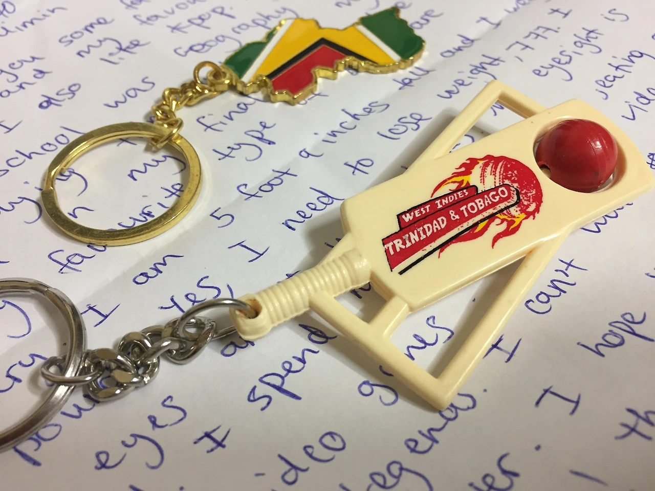 집에 오자마자 우마르의 편지부터 꺼낸다. 봉투 안에서 혼자 볼록하게 튀어나와 자신의 존재감을 드러내고 있던 녀석의 정체는 열쇠고리 두 개. 딱 트리니다드스러운 열쇠고리다. 이제 열쇠 쓸 일이 거의 없기는 하지만 만약 열쇠가 생긴다면 그때 요놈들에 걸어 놓아야겠다.