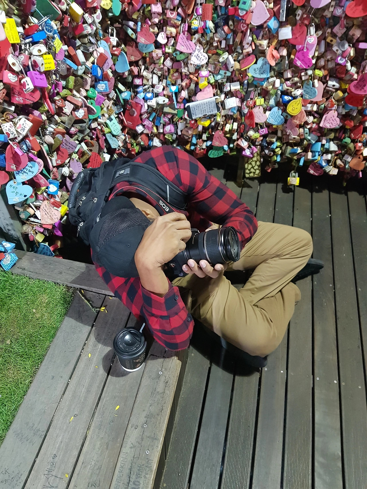 카니발 영상을 보는 사이 빈센트는 오고 가는 케이블카와 아래에서 올려다 보이는 남산타워 야경 찍기에 푹 빠져있다. 사진 찍는 뒷모습은 뭐 아주 전문 포토그래퍼다.