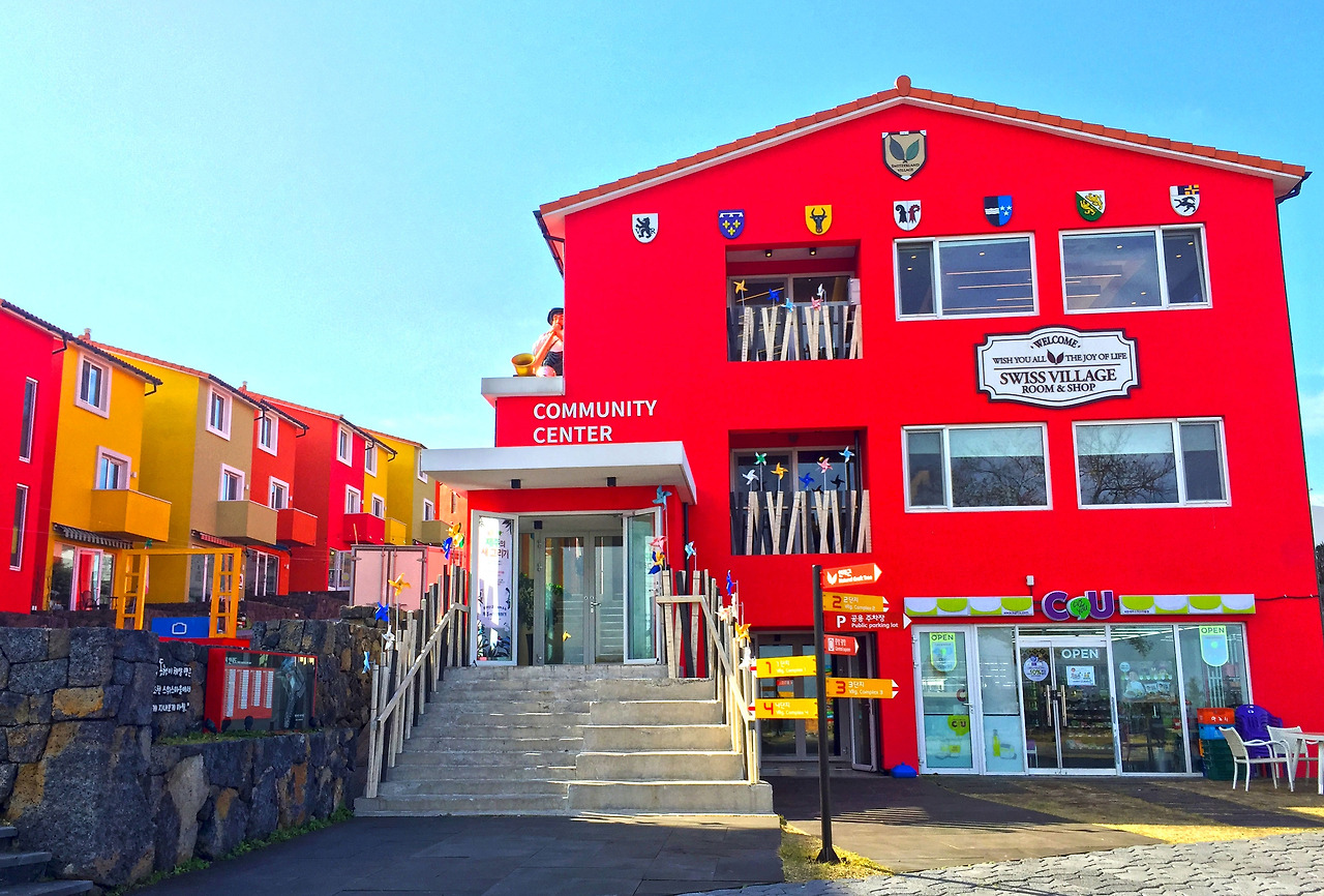 빨간색의 나라 스위스. 스위스의 한 작은 마을이 제주에 내려앉았다. 나무를 옮겨 심듯 마을을 통째로 들어 올려 그대로 옮겨 놓았다. 혹시 저 언덕 너머의 어느 집에 알프스의 소녀 하이디가 살고 있지는 않을까? 빨강, 노랑, 주황. 알록달록 촘촘히 박혀있는 집들이 어릴 적 동화 감성을 콕! 콕! 건드린다.